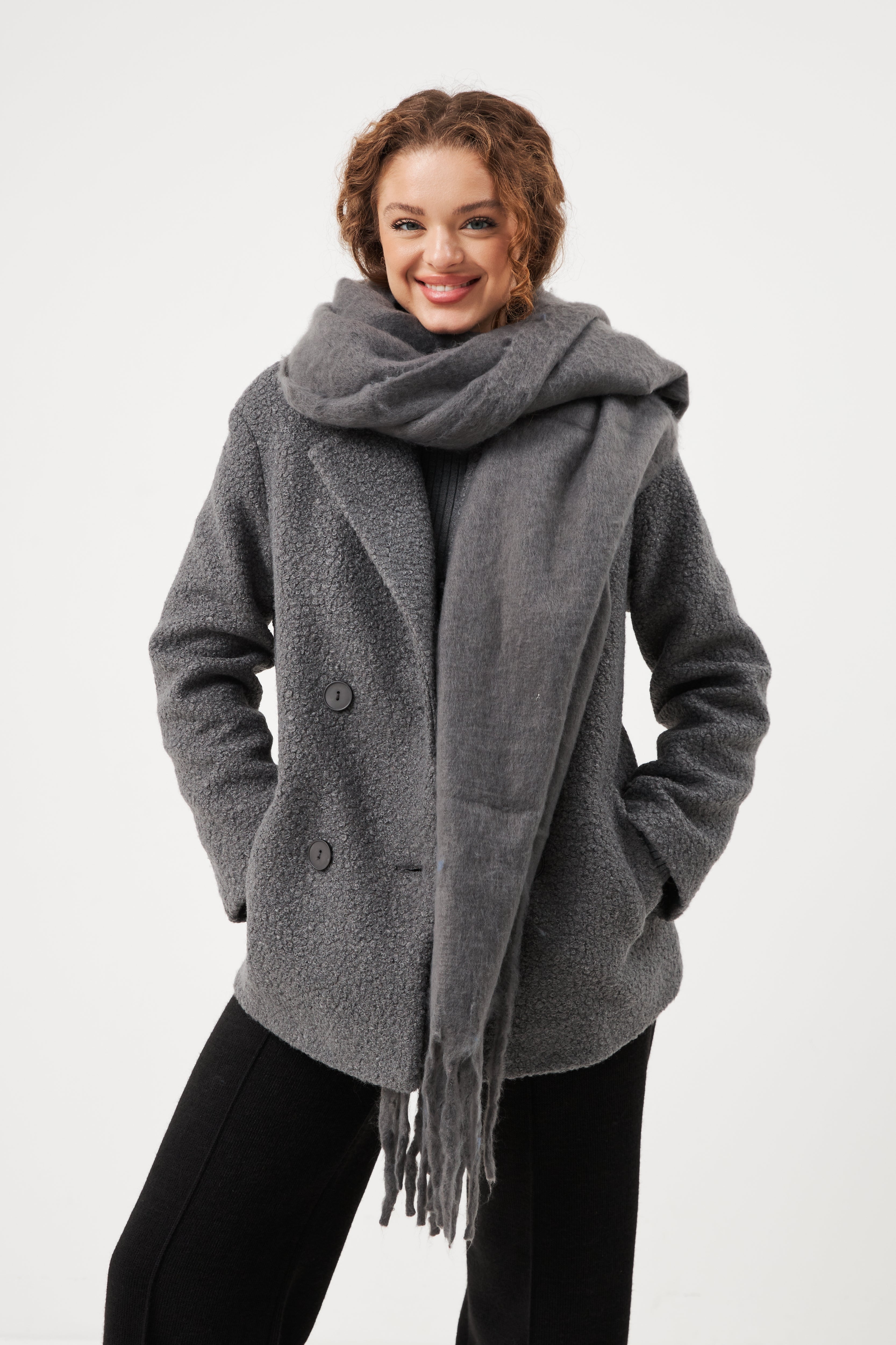 М'яка кашемірова суміш забезпечує максимальний комфорт і тепло, а довгий розмір дозволяє носити його різними способами – від класичного обгортання до вільного накидання. Виконаний у базових монохромних відтінках, шарф легко комбінується з будь-яким верхнім одягом, стаючи незамінним елементом для створення затишних і стильних зимових образів.