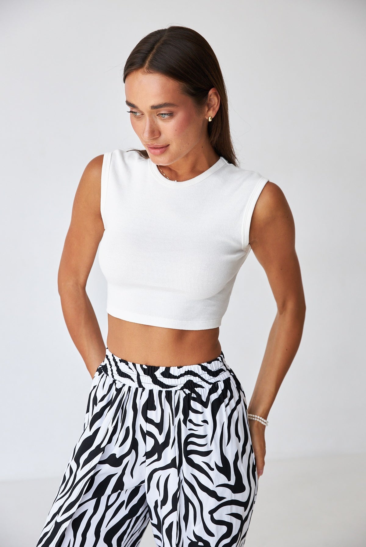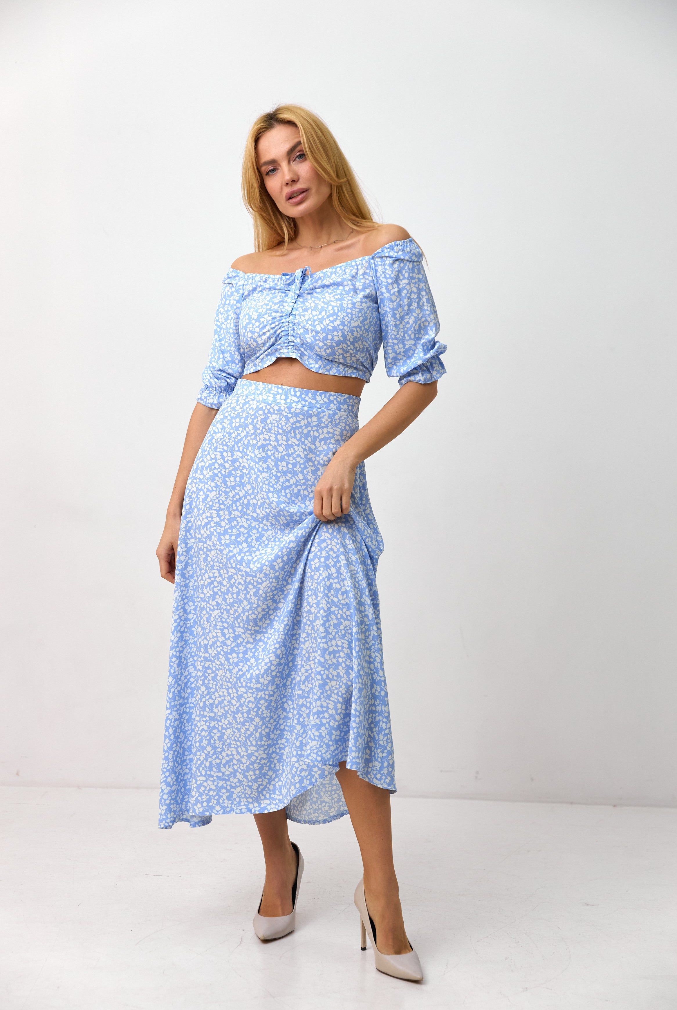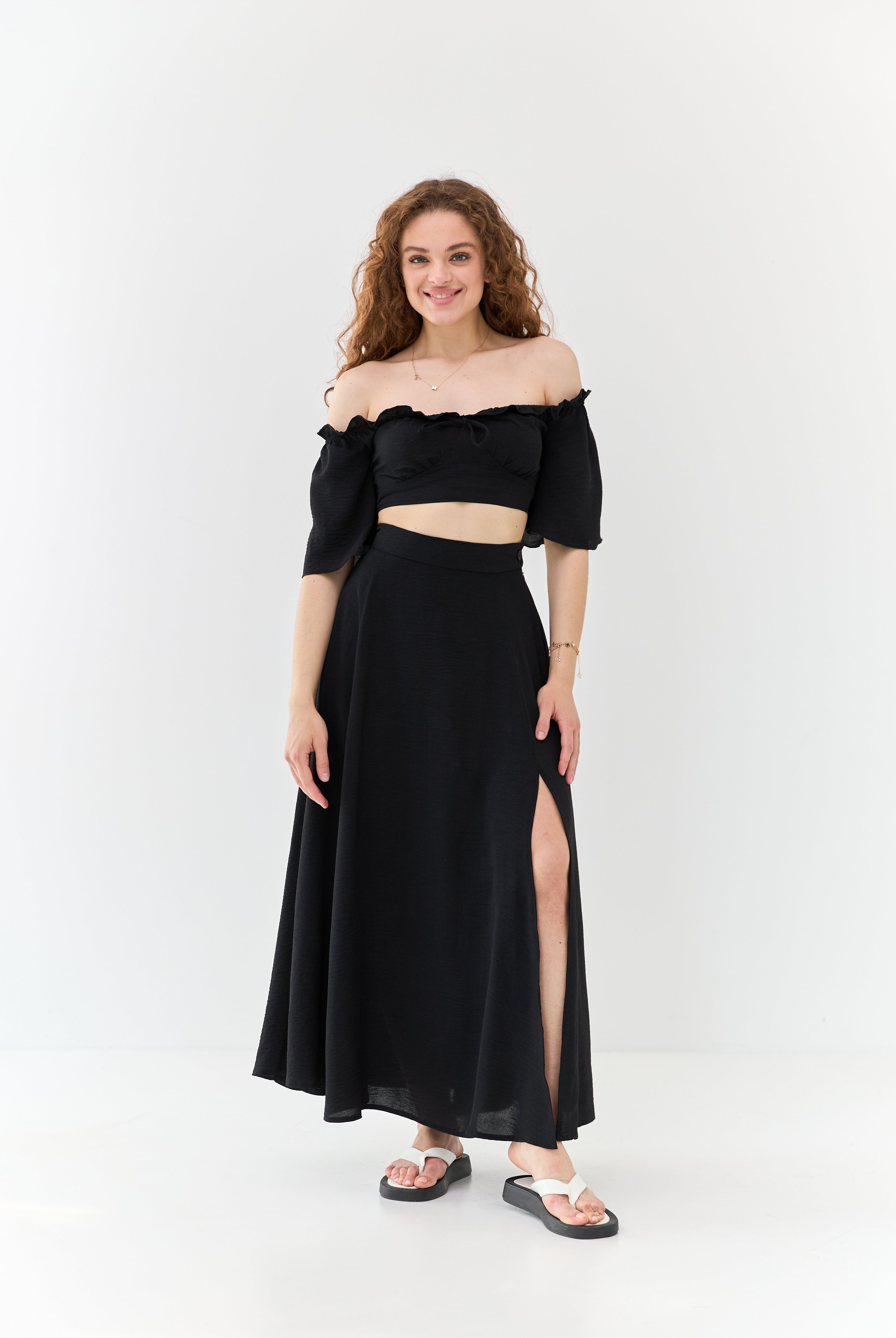 Кроп-топ з відкладним коміром — стильна база для літніх образів.