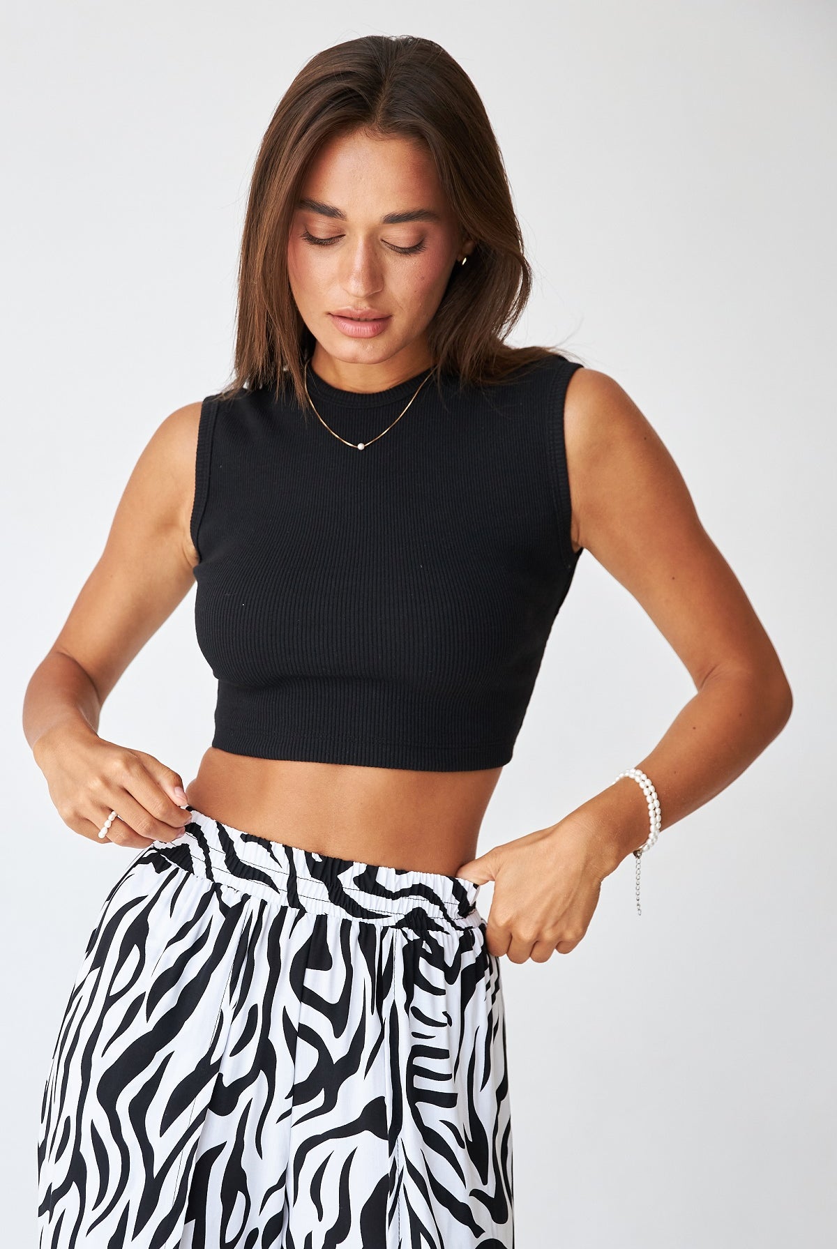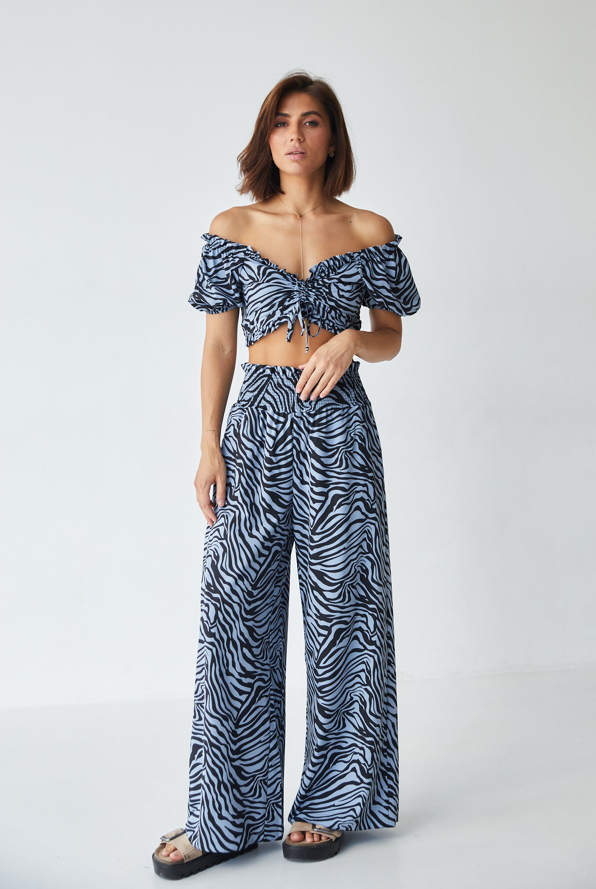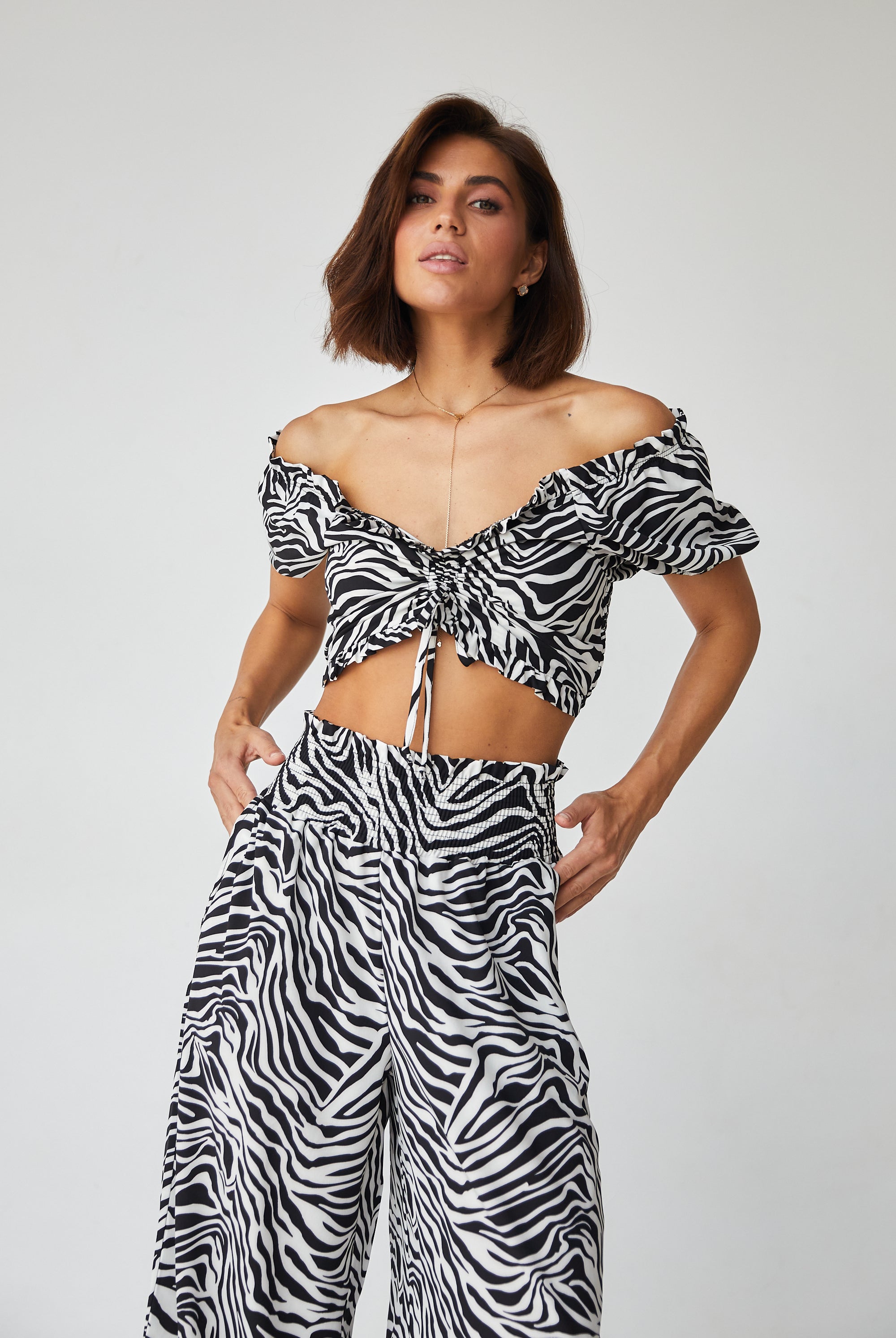 Кроп-топ з відкладним коміром — стильна база для літніх образів.
