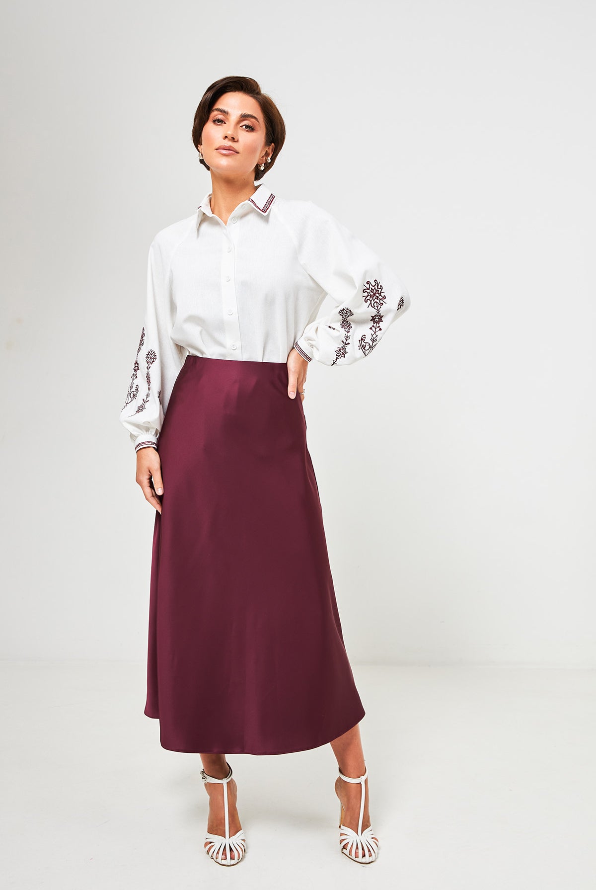 - Довжина рукава: вимірюється по зовнішній стороні, злегка зігнутою в лікті руки до зап'ястя.