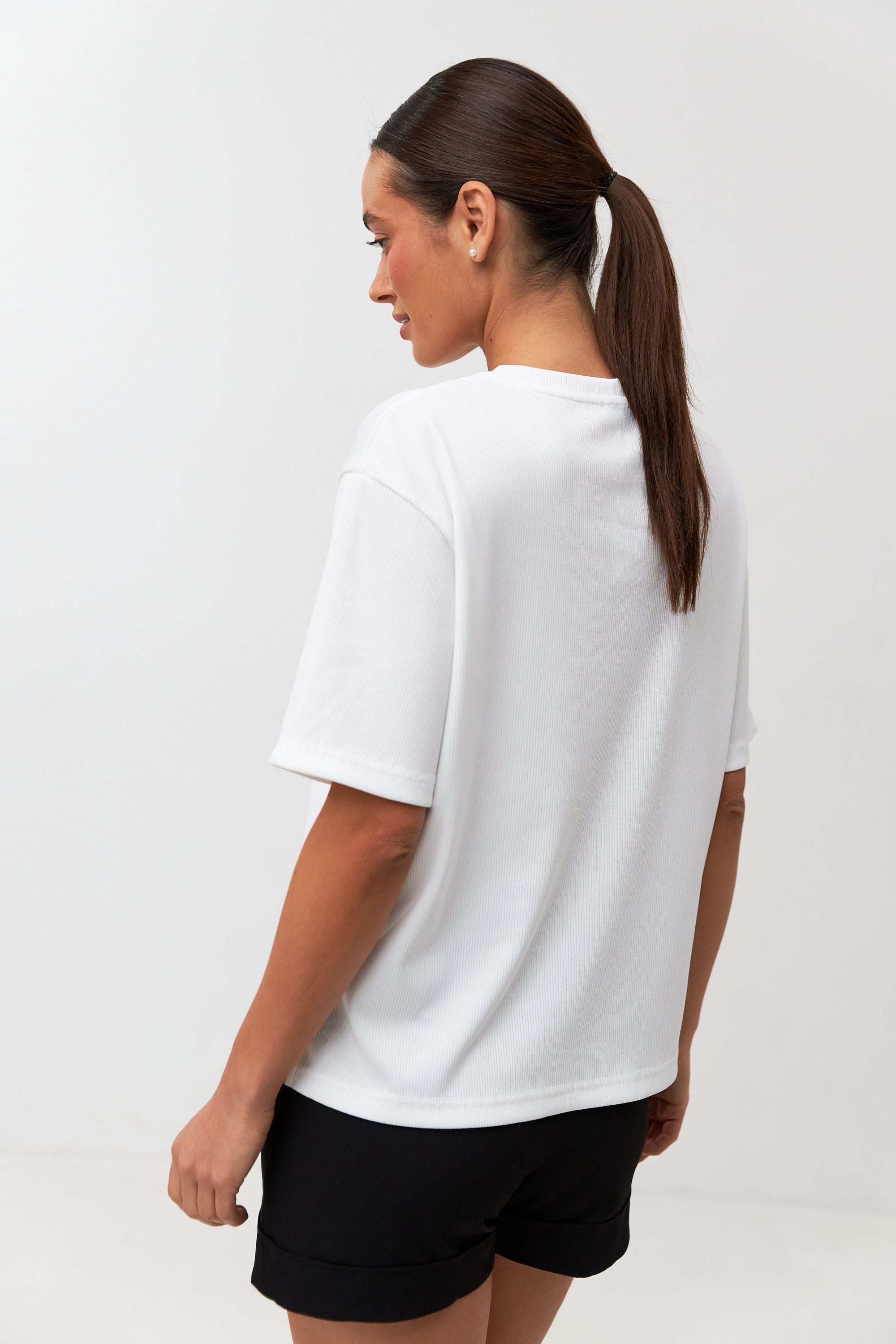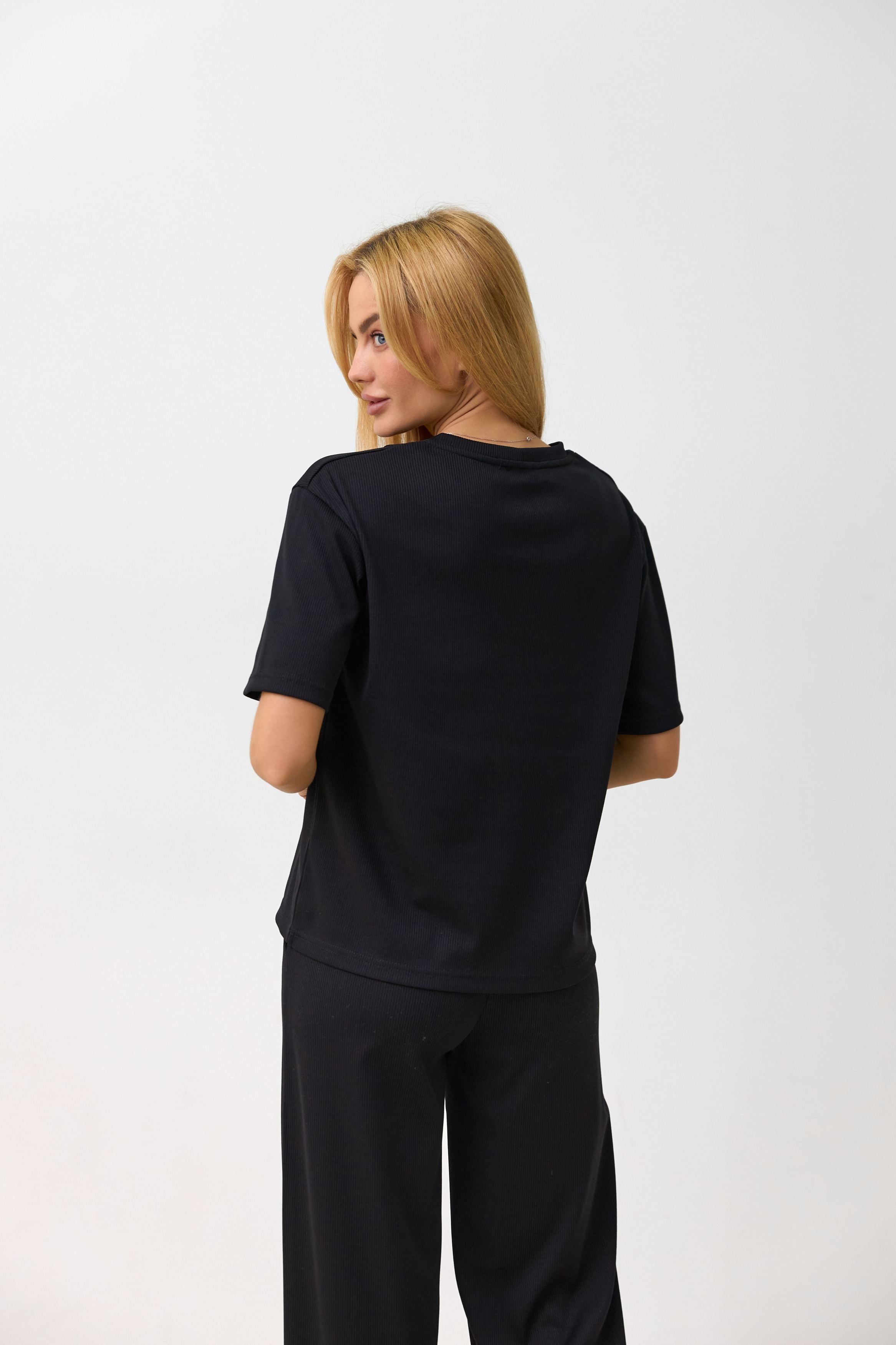 Дизайн лаконічний і сучасний — короткий рукав, круглий виріз горловини, базовий однотонний колір.