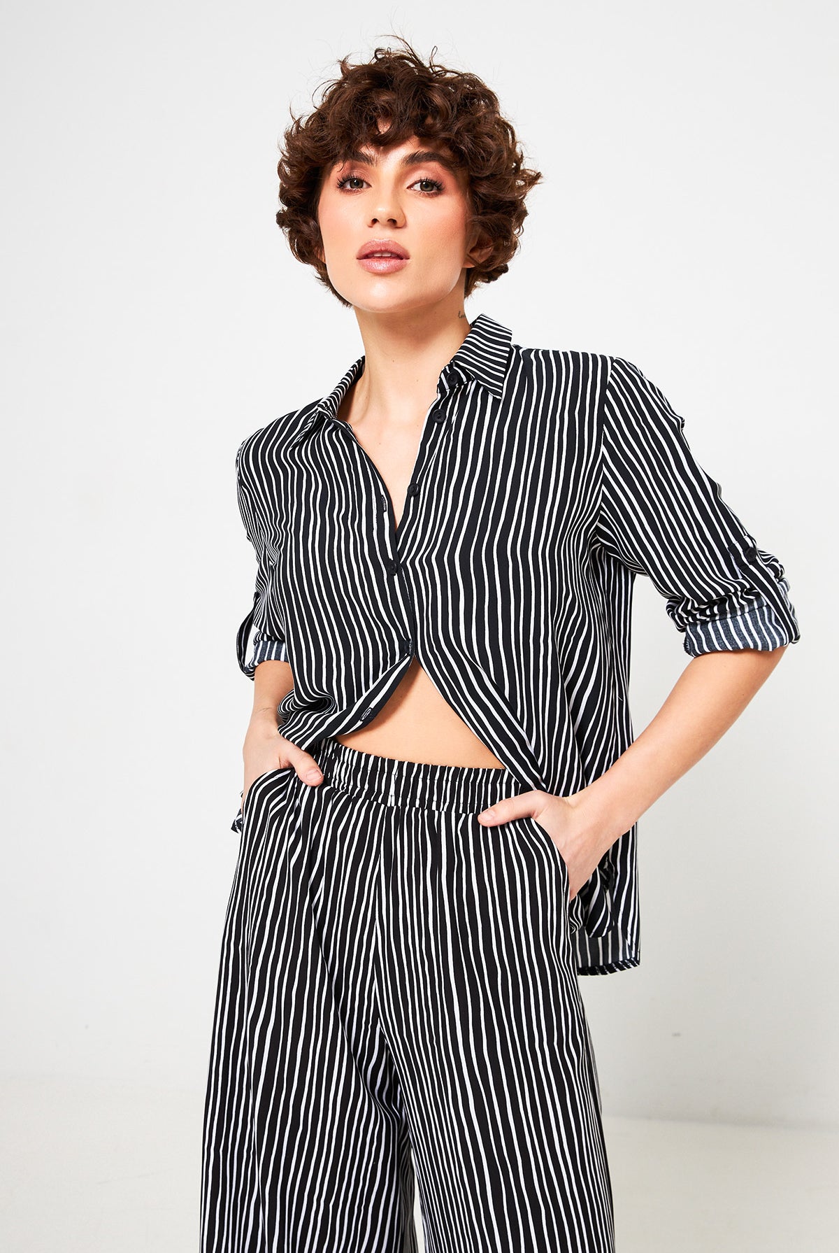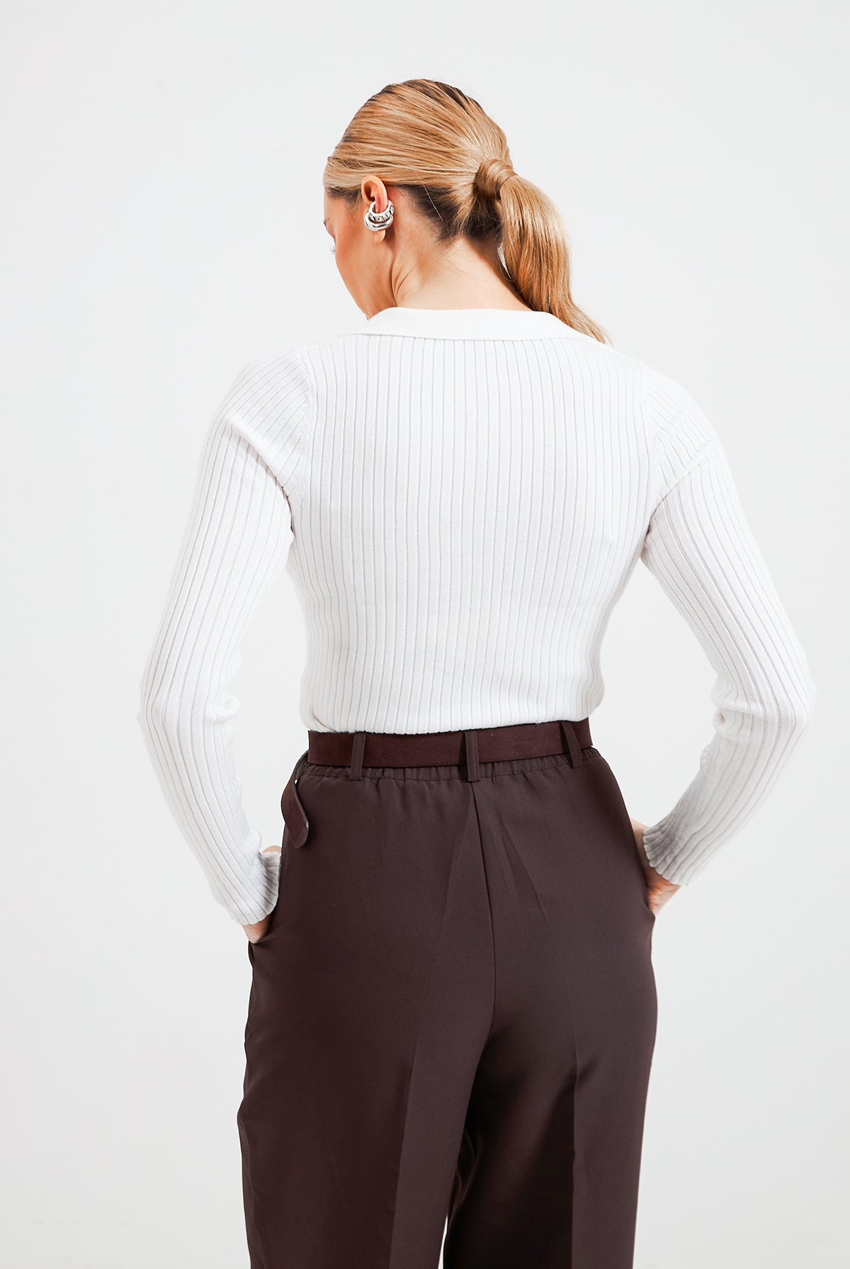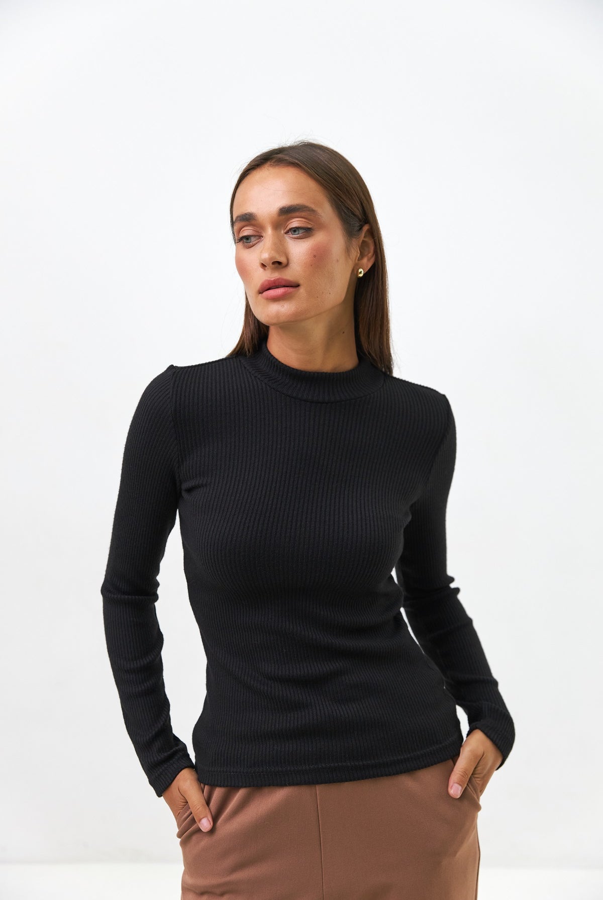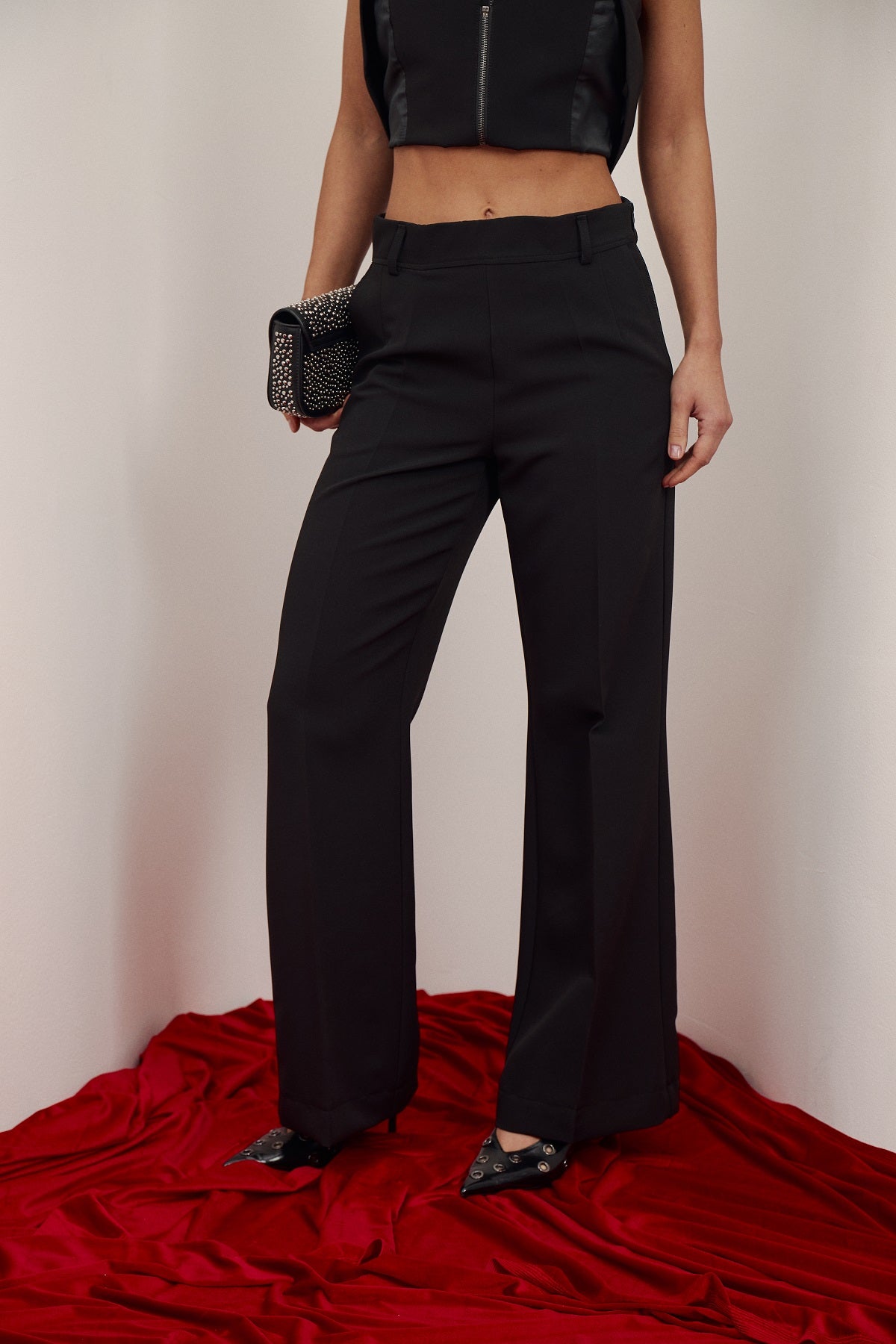 Стильні чорні штани кльош знову на піку моди. Вони ідеально подовжують ноги та створюють гармонійний силует. Висока посадка підкреслює талію. Штани виконані із костюмної тканини, що робить їх чудовим вибором як для ділового стилю, так і для створення стильних кежуал-образів.
