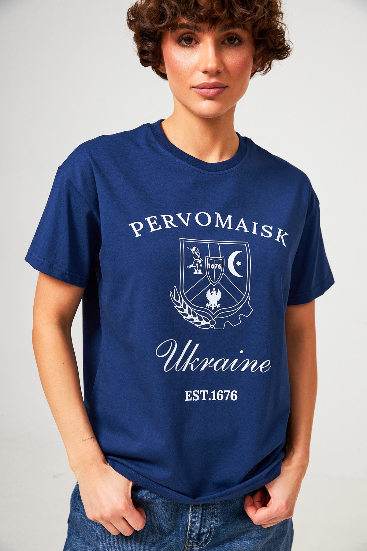 Футболка Первомайськ (PERVOMAISK) - ця серія створена для тих, хто цінує своє коріння та хоче підкреслити приналежність до рідного міста. Поєднання класичного дизайну, символів та важливих дат робить футболку не просто одягом, а частиною вашої особистої історії. У центрі композиції — деталізоване зображення герба міста, виконане методом зносостійкого друку. Напис назви міста та рік його заснування додають виробу вінтажного клубного стилю.
