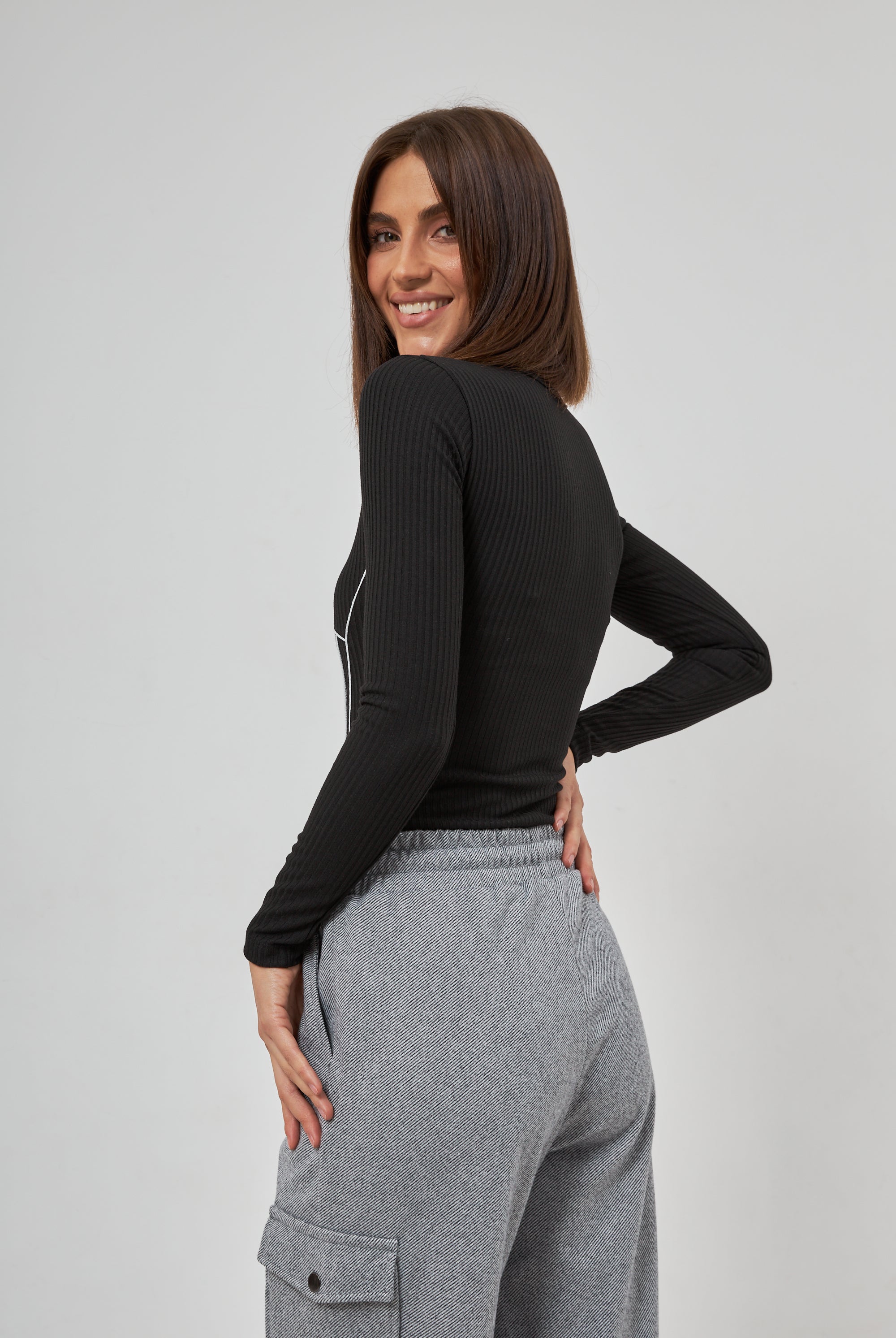 Елегантний і практичний гольф з м'якого трикотажу в рубчик, який ідеально підходить для повсякденного носіння або створення вишуканих багатошарових образів. Цільнокроєна стійка надає моделі акуратного вигляду та забезпечує додатковий комфорт.