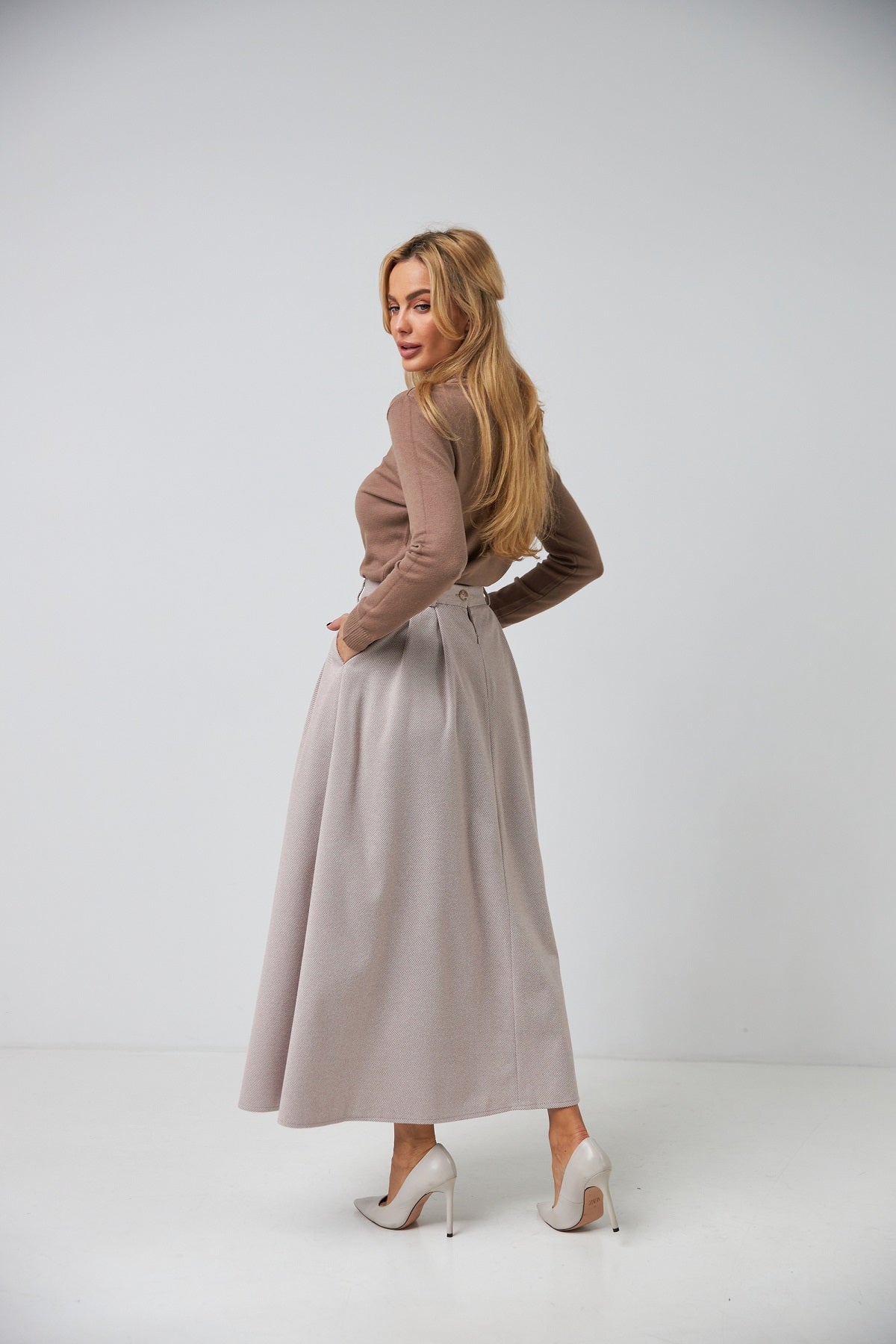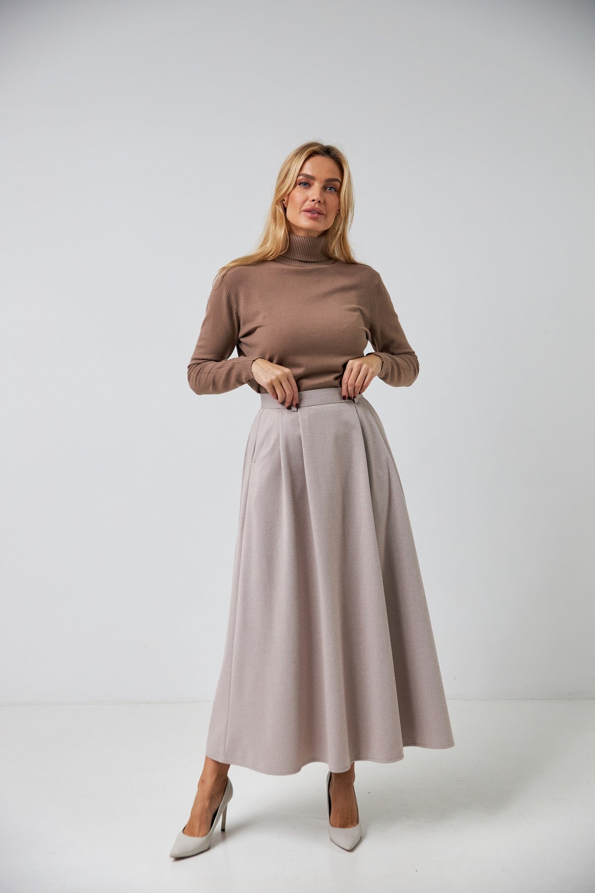 - Обхват талії: вимірюється строго горизонтально по природній лінії талії (найбільше вузьке місце).
