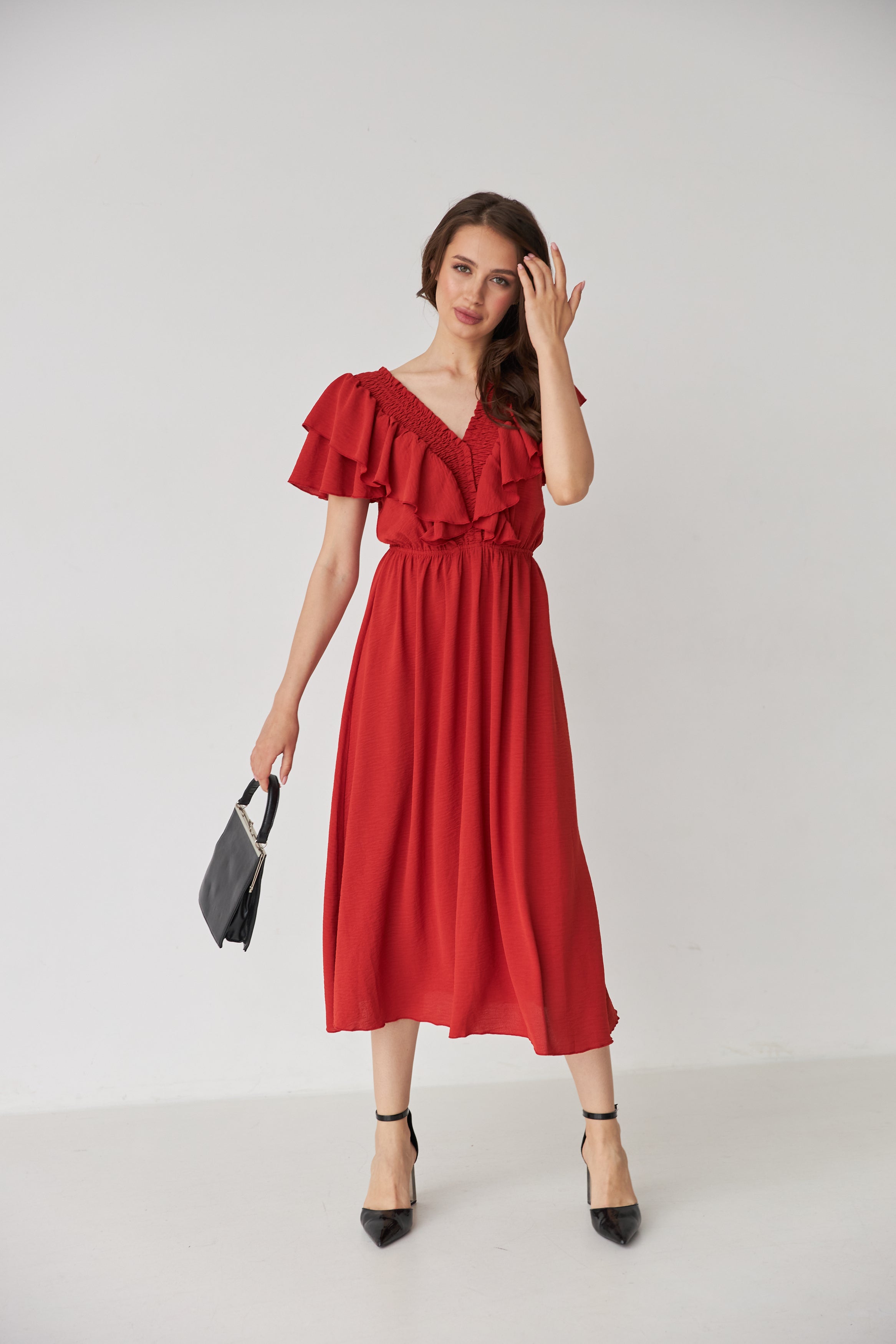 Легка та елегантна сукня-міді, яка поєднує в собі комфорт і жіночність завдяки досконалому крою та матеріалу.