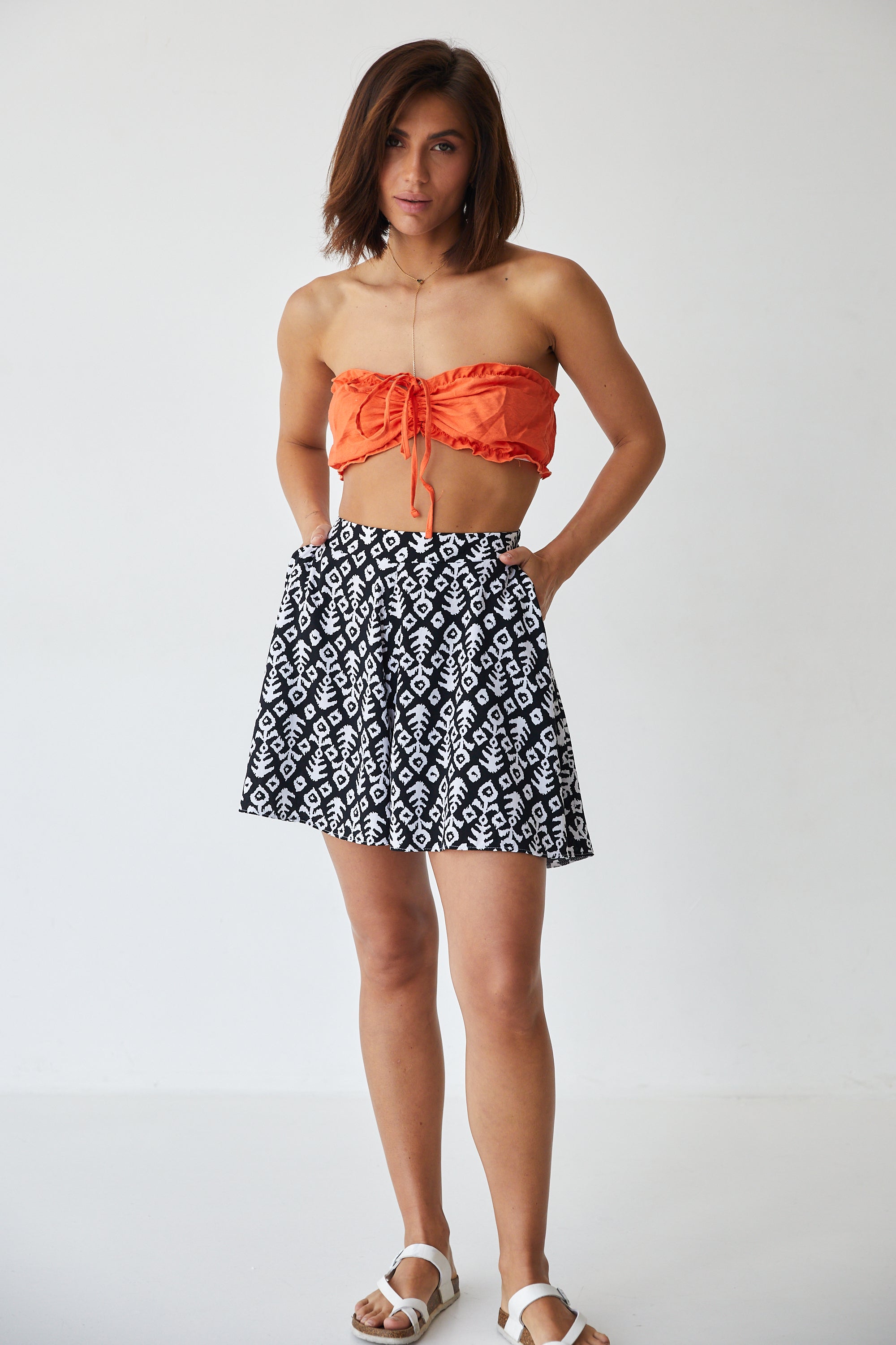 Шорти-спідниця — це стильне поєднання зручності шортів і жіночності спідниці. Модель виготовлена з легкої, приємної до тіла тканини, має комфортну посадку і чудово підходить як для повсякденного носіння, так і для активного відпочинку. Ідеальний варіант для теплої пори року.