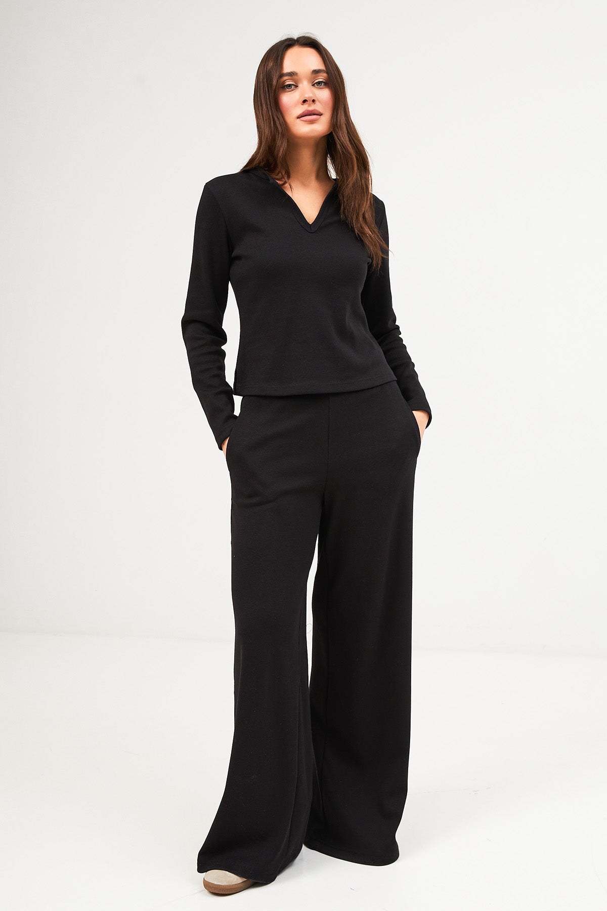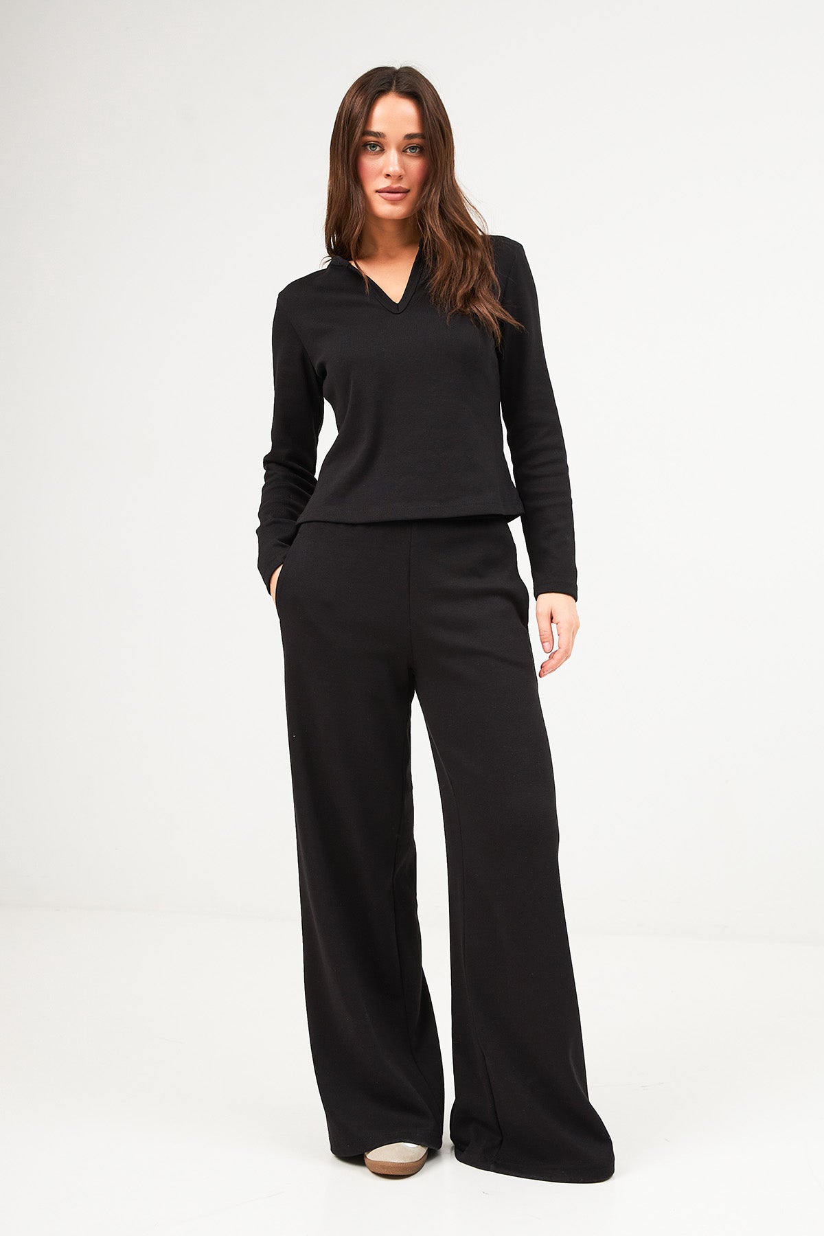 Широкі штанини вільного крою візуально подовжують ноги та дарують відчуття повної свободи рухів.