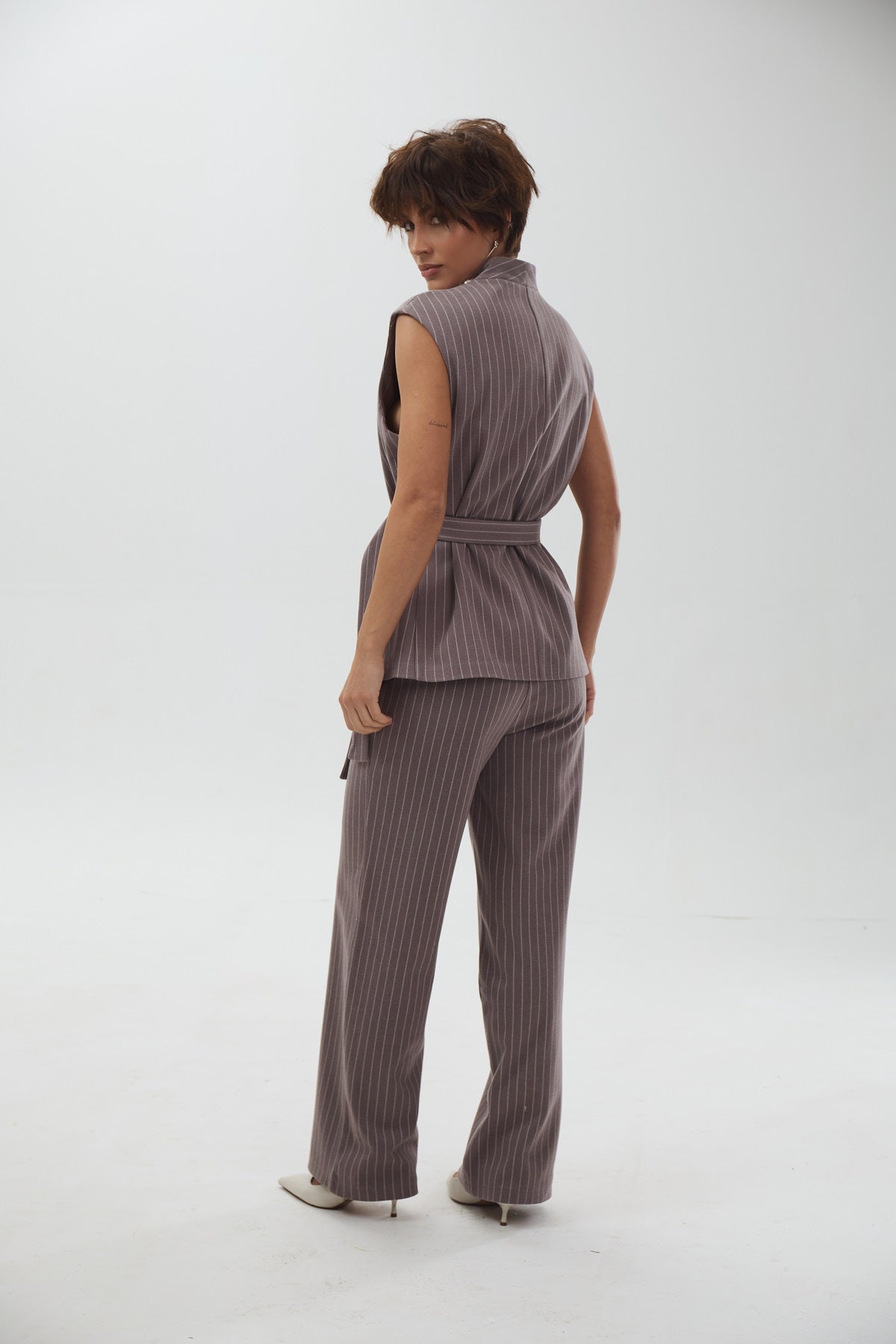 Широкі штани-палаццо у тонку смужку з високою посадкою