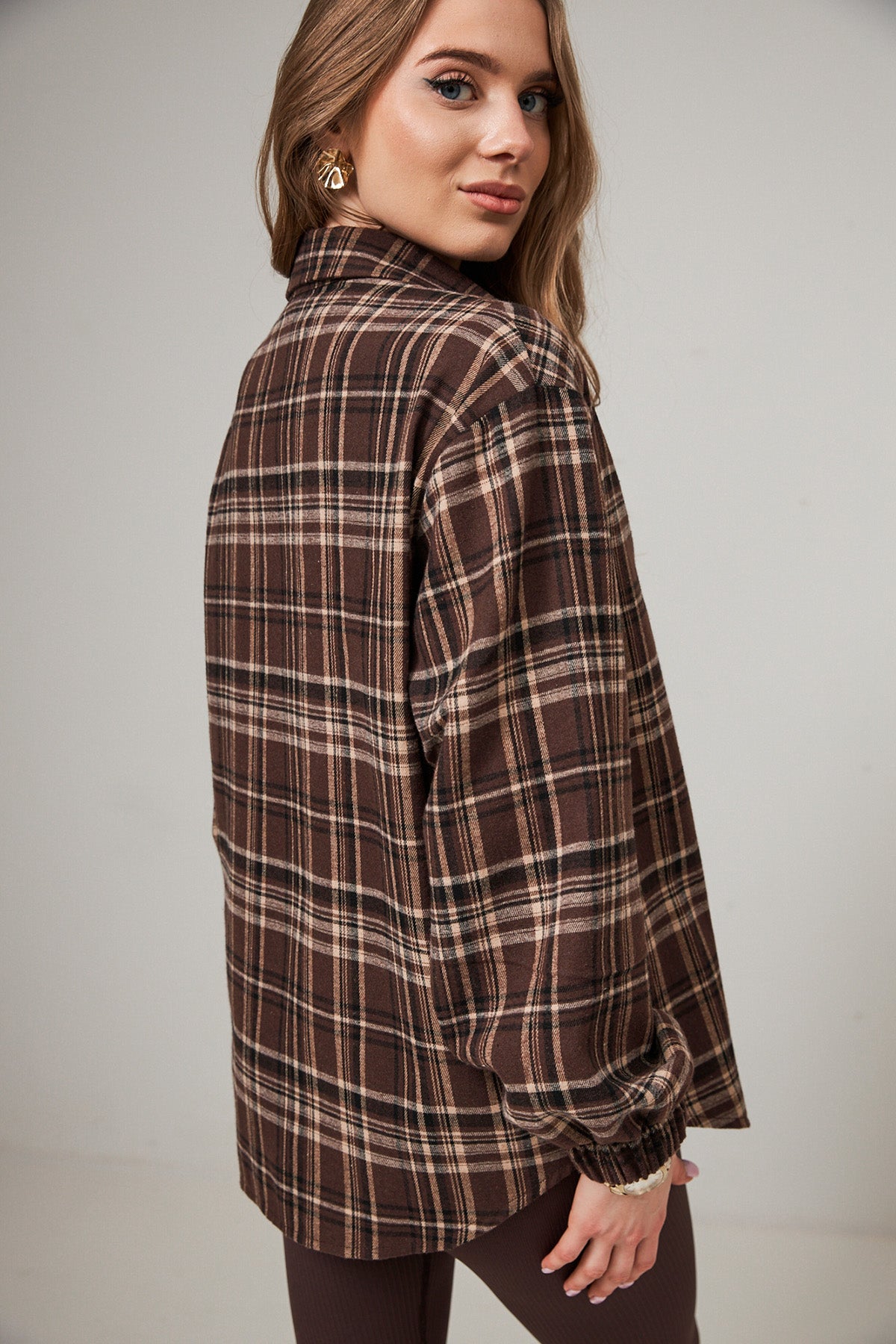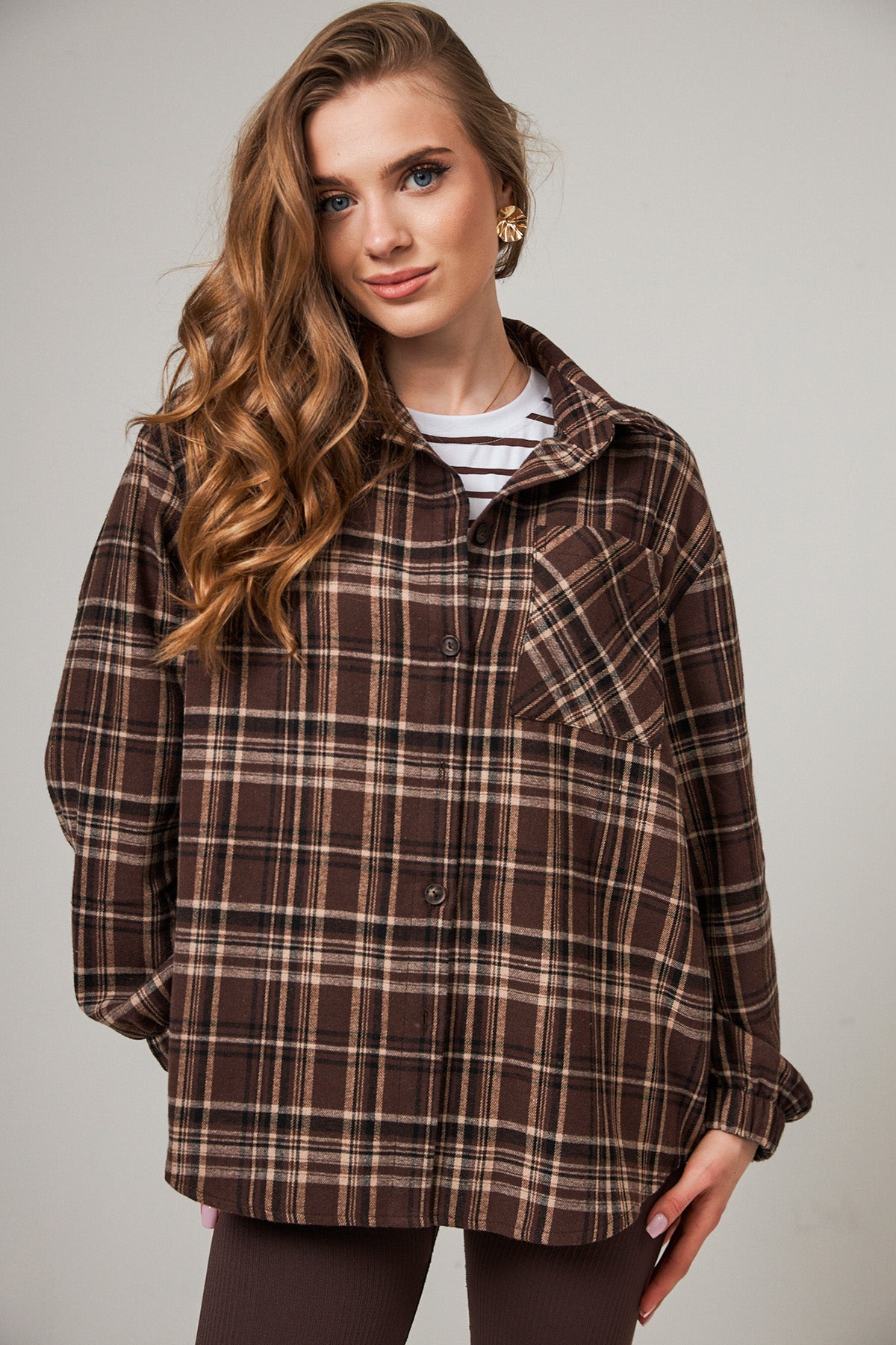 Додайте теплих відтінків у свій гардероб з нашою сорочкою вільного крою. Поєднання насиченого шоколадного кольору та класичного принту в клітинку робить цю модель універсальною базою, яка ніколи не вийде з моди.