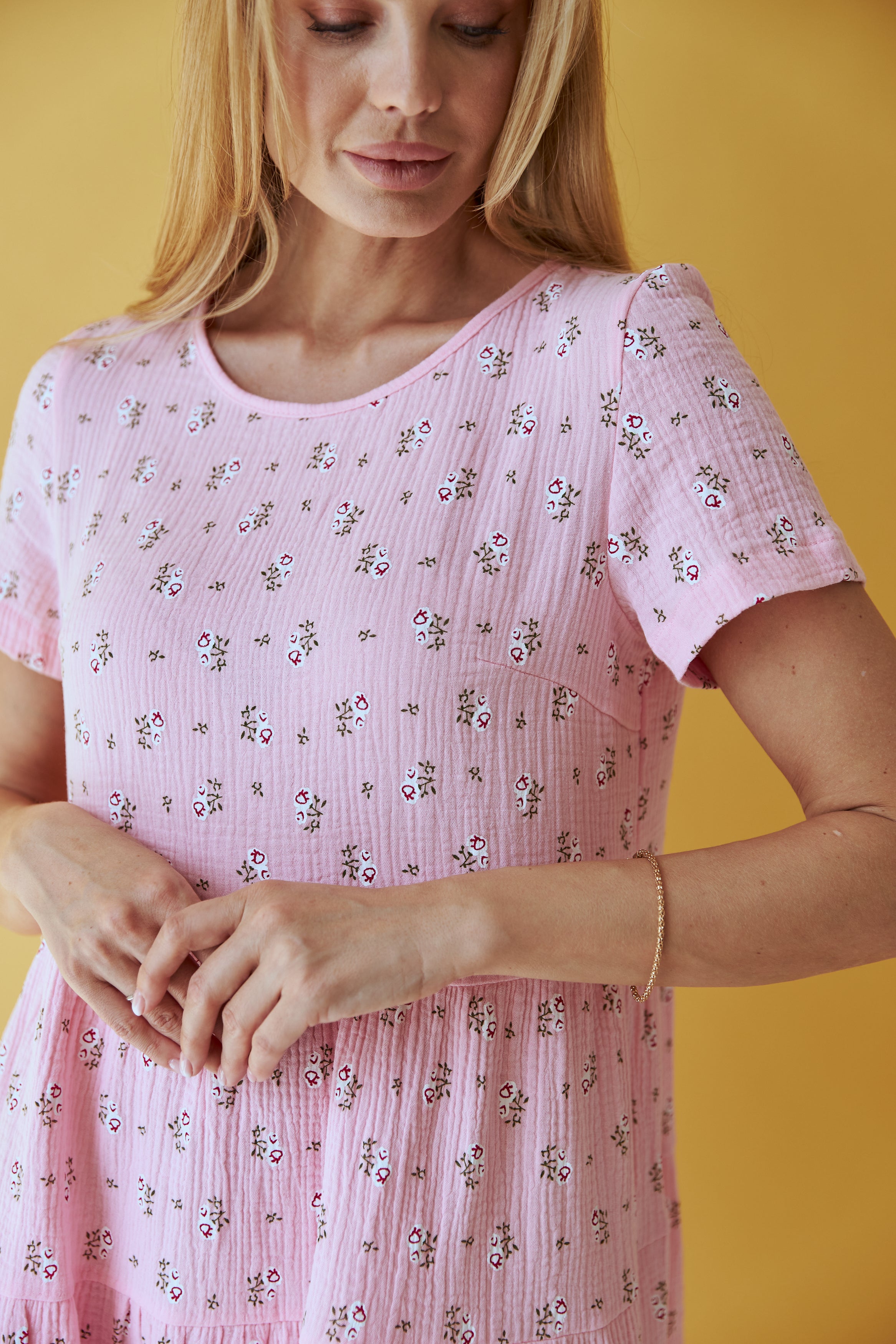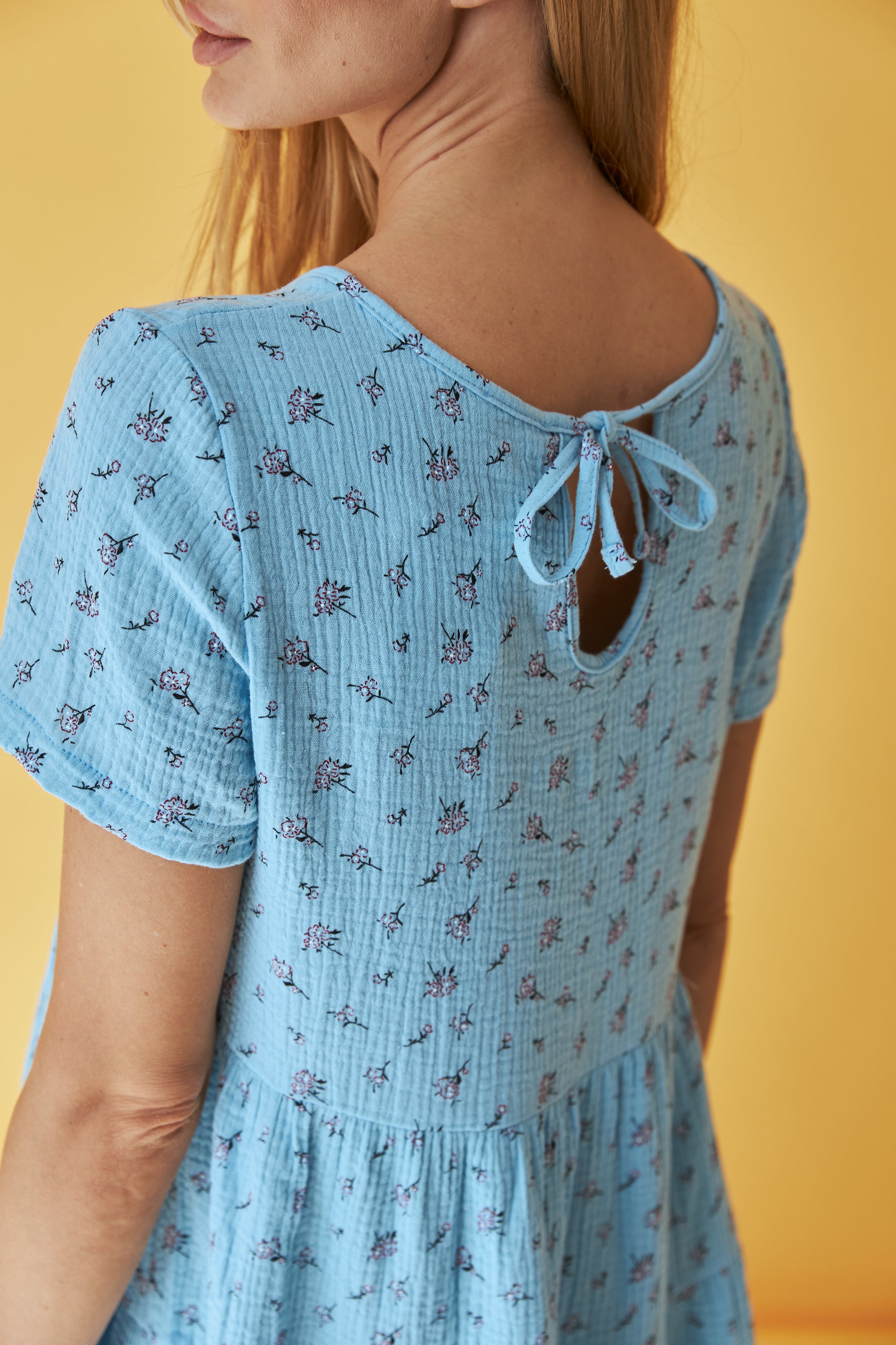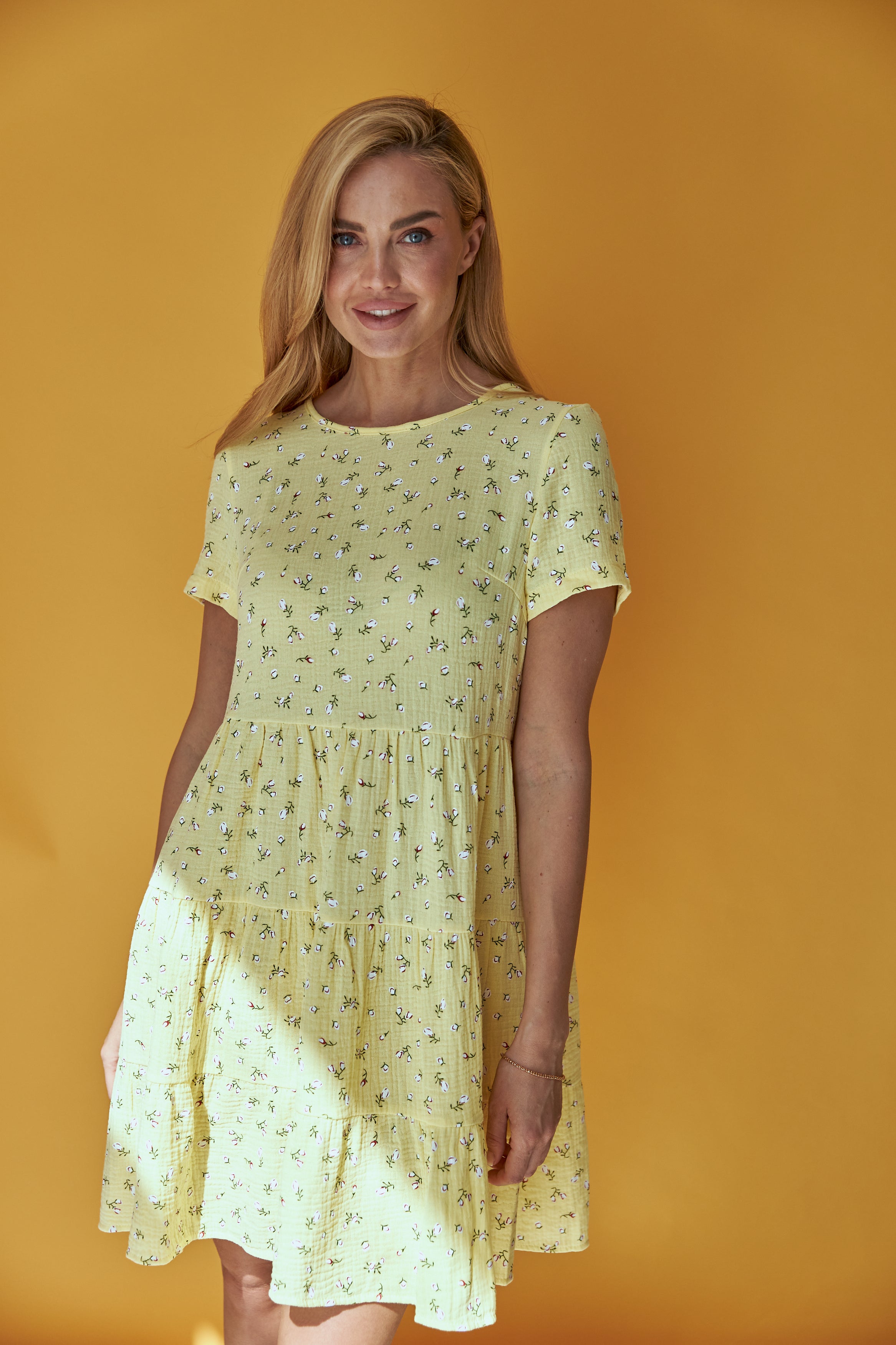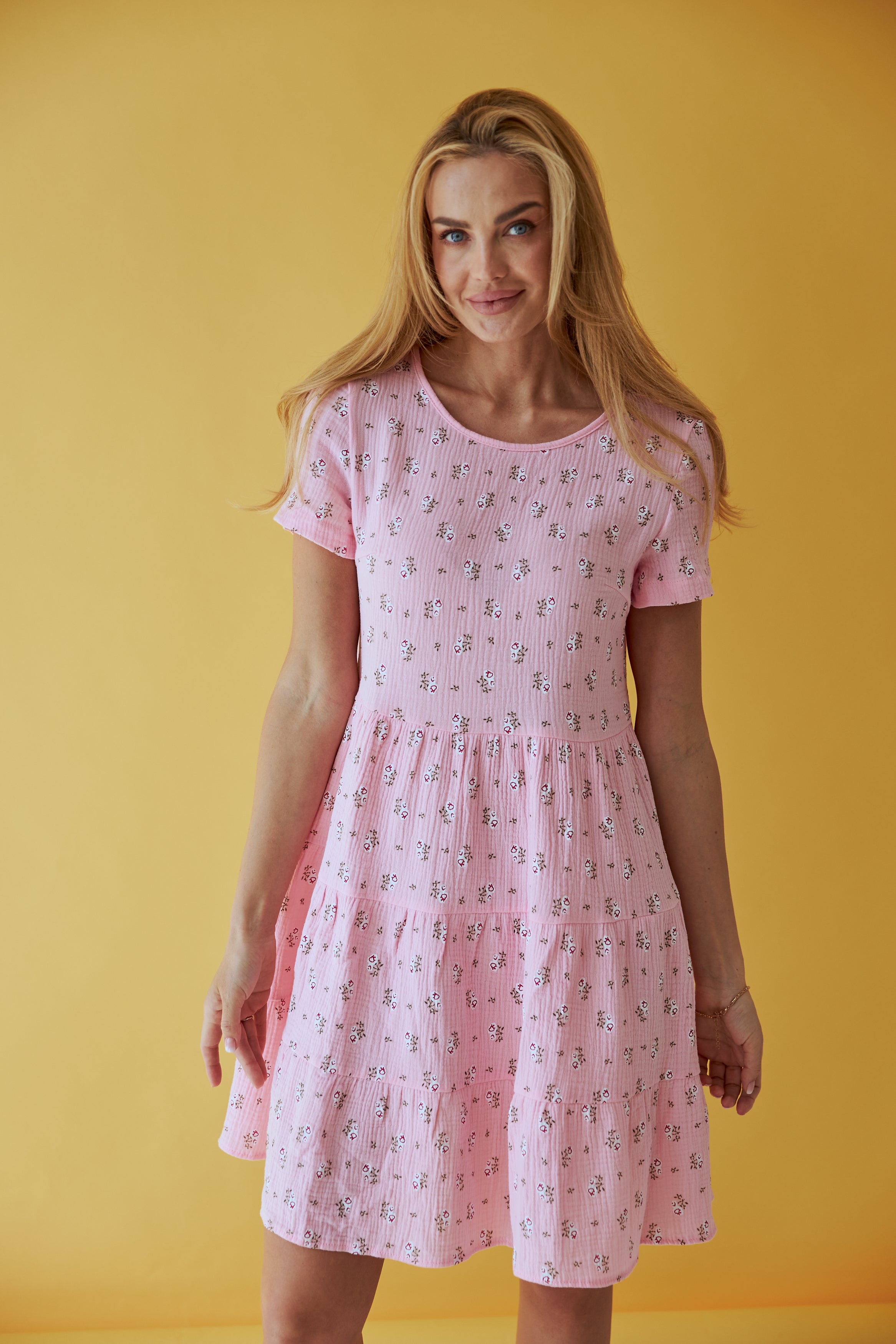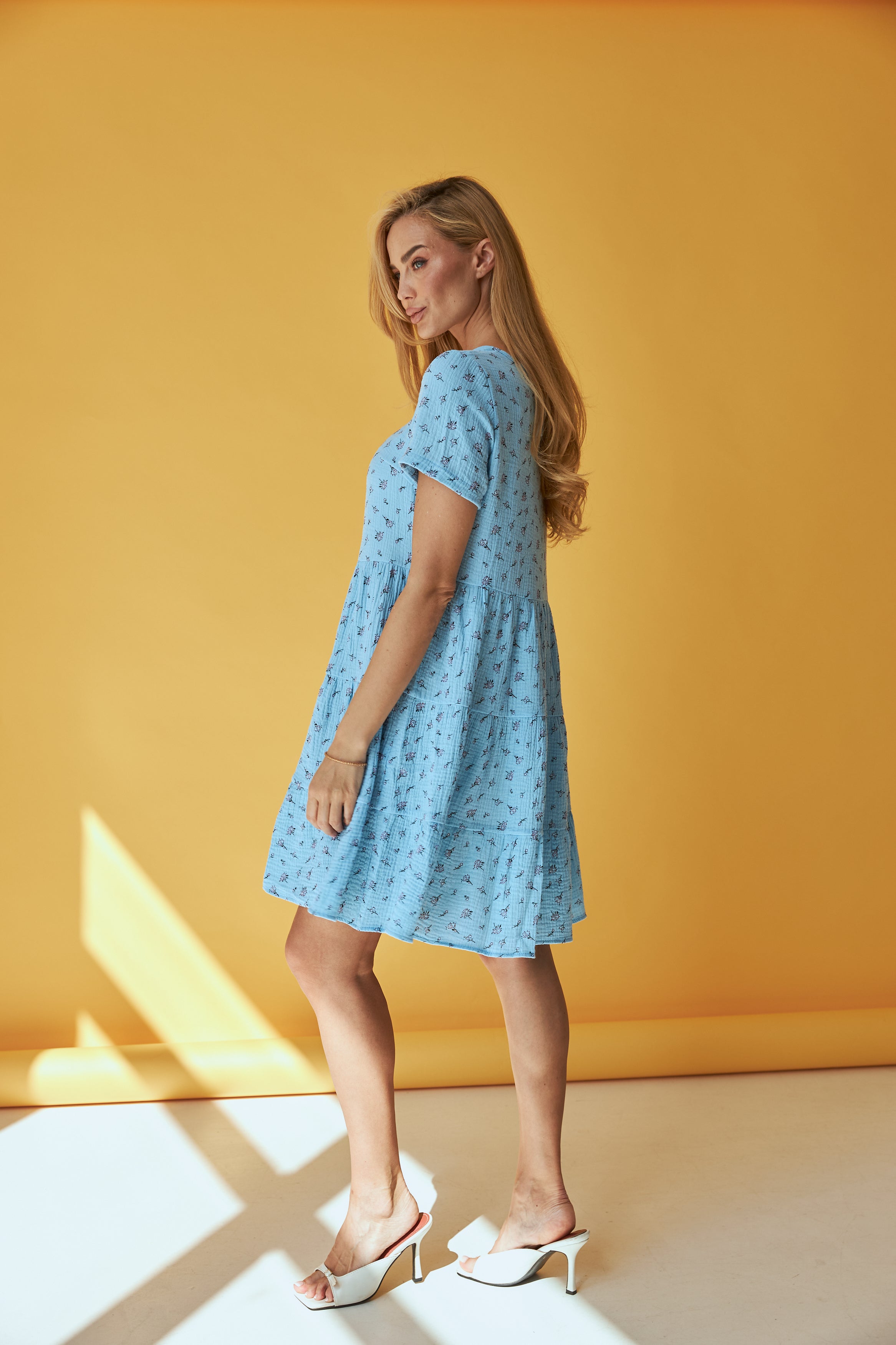Ця легка та жіночна сукня від Wear Me — ідеальний вибір для літнього гардеробу. Виготовлена з м'якого мусліну, вона забезпечує комфорт та приємні відчуття на шкірі навіть у найспекотніші дні. Триярусний фасон додає об'єму та рухливості, створюючи романтичний образ.