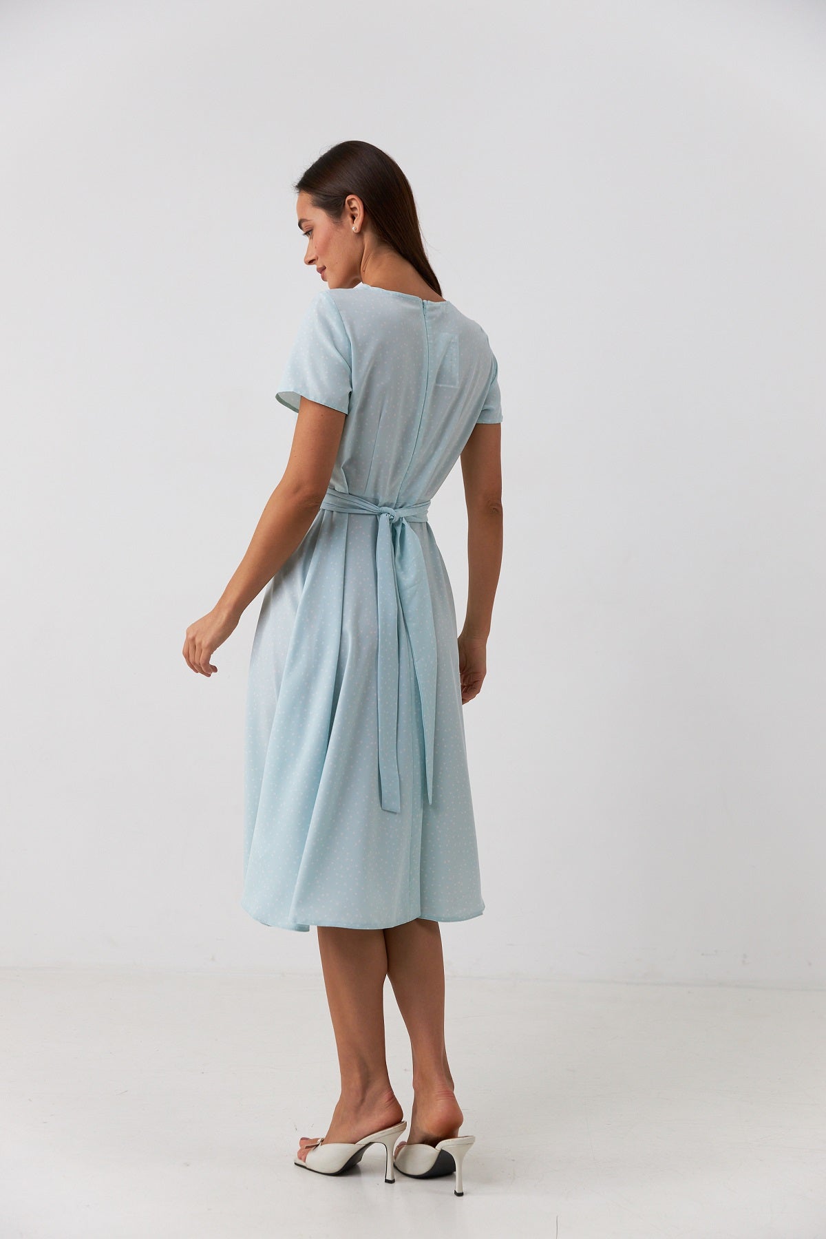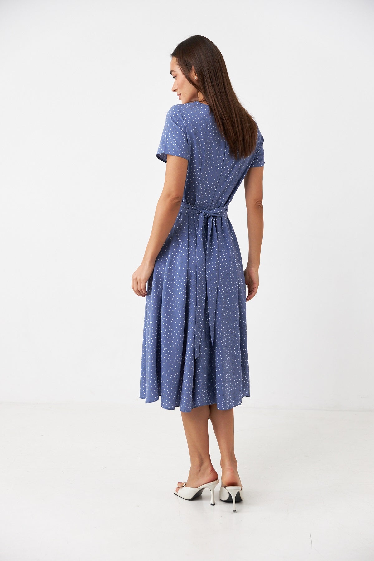 Сукня міді з перекрутом в горох