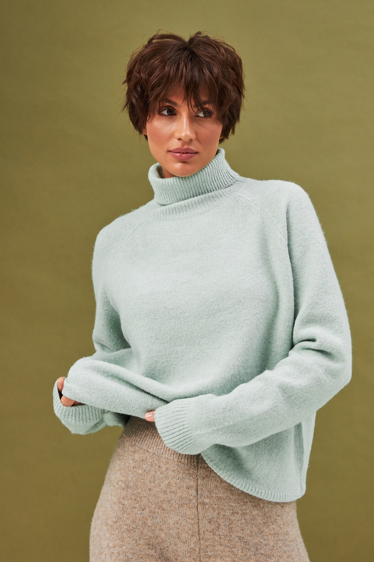 Светр реглан з горлом