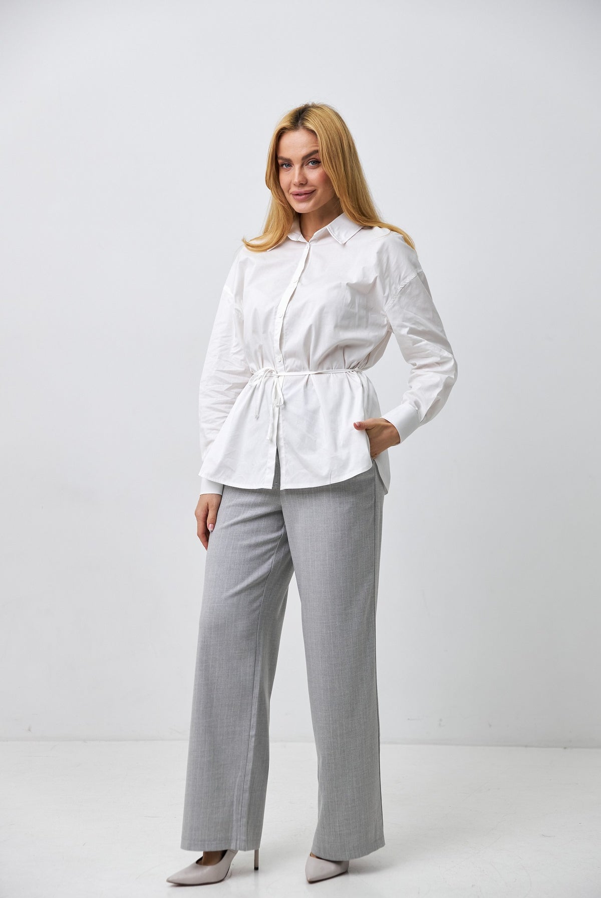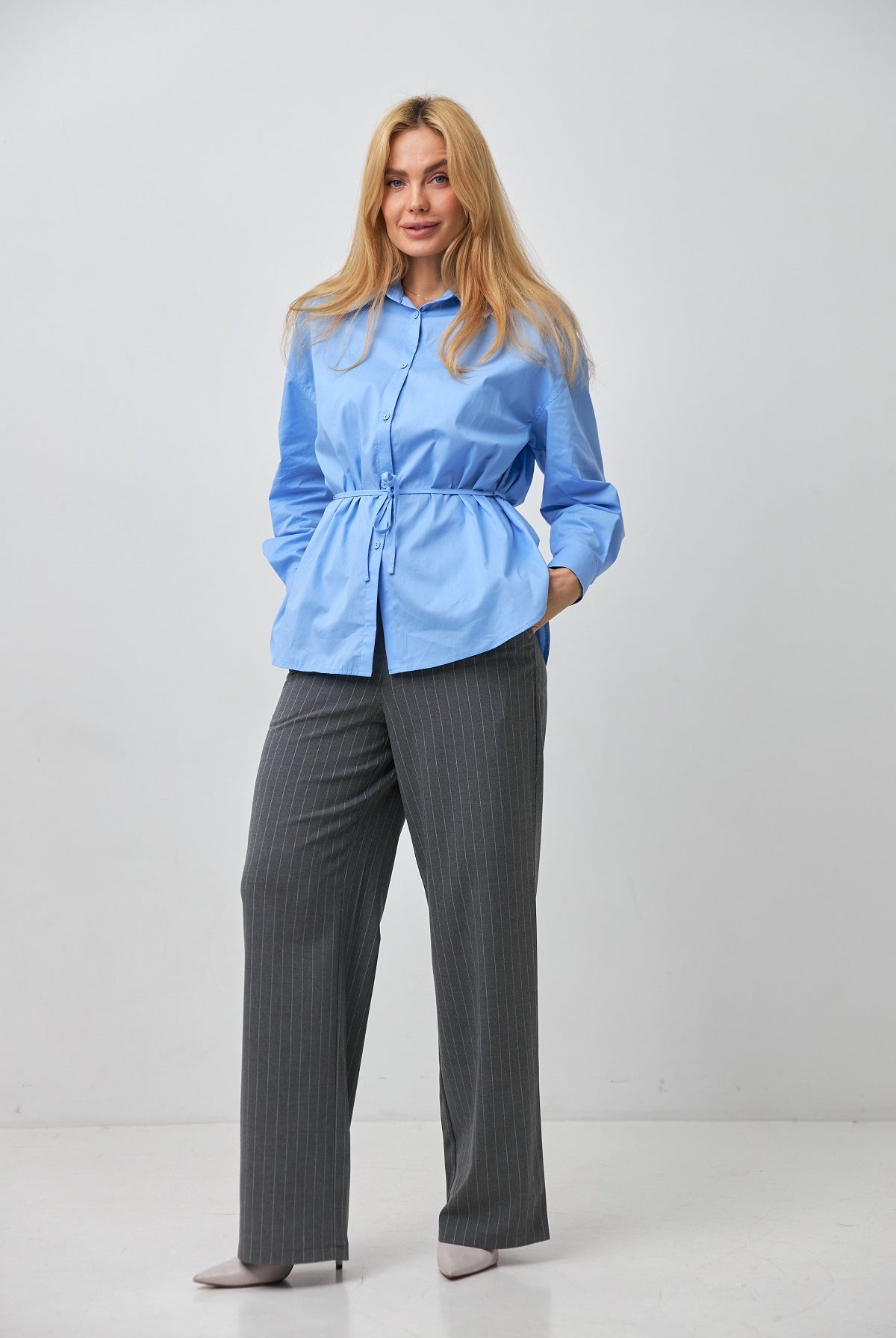 Завдяки знімному поясу ви можете легко змінювати настрій образу. З поясом — це жіночний напівприлеглий силует, що акцентує на талії; без нього — трендовий вільний крій, що ідеально підходить для розслаблених міських луків.