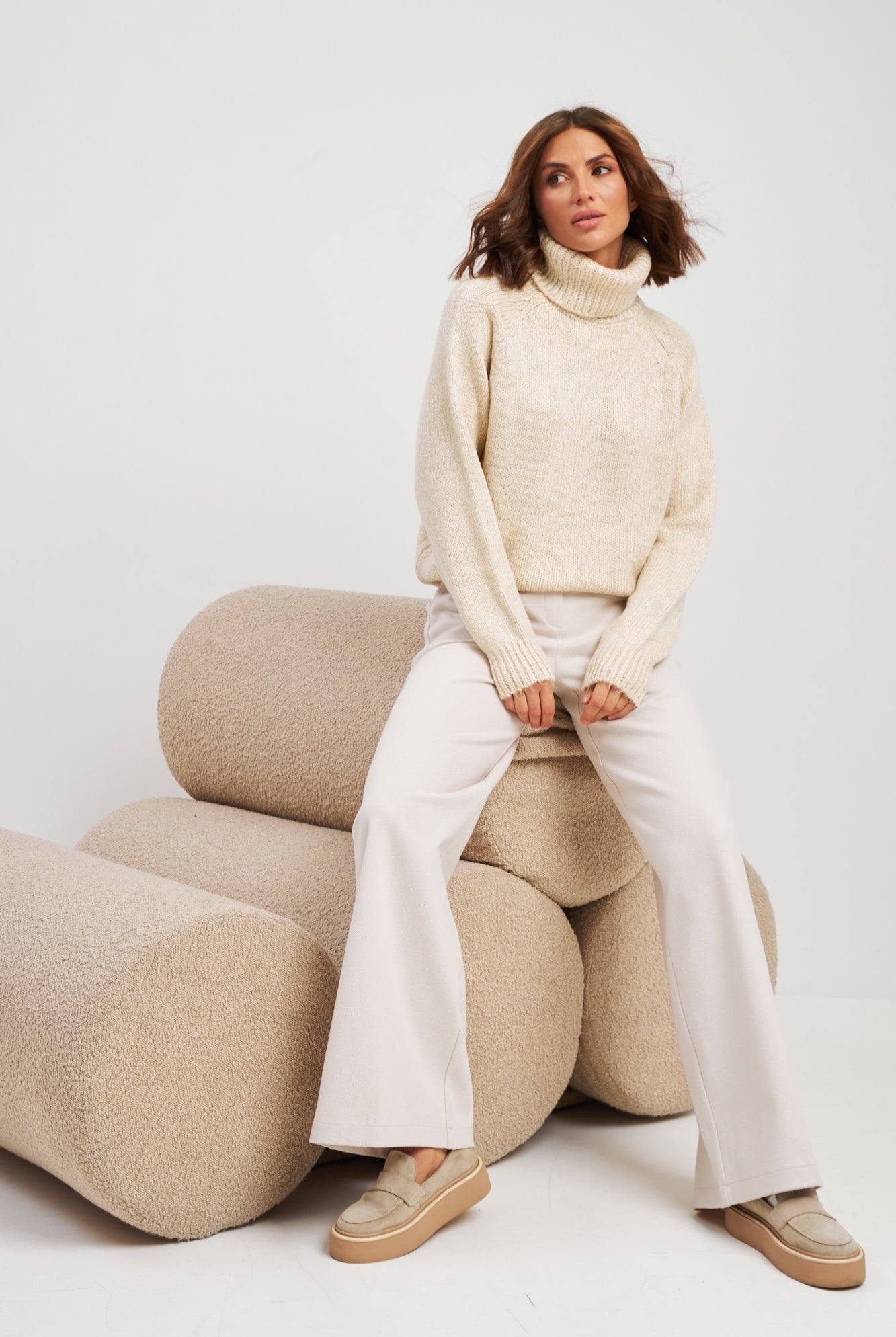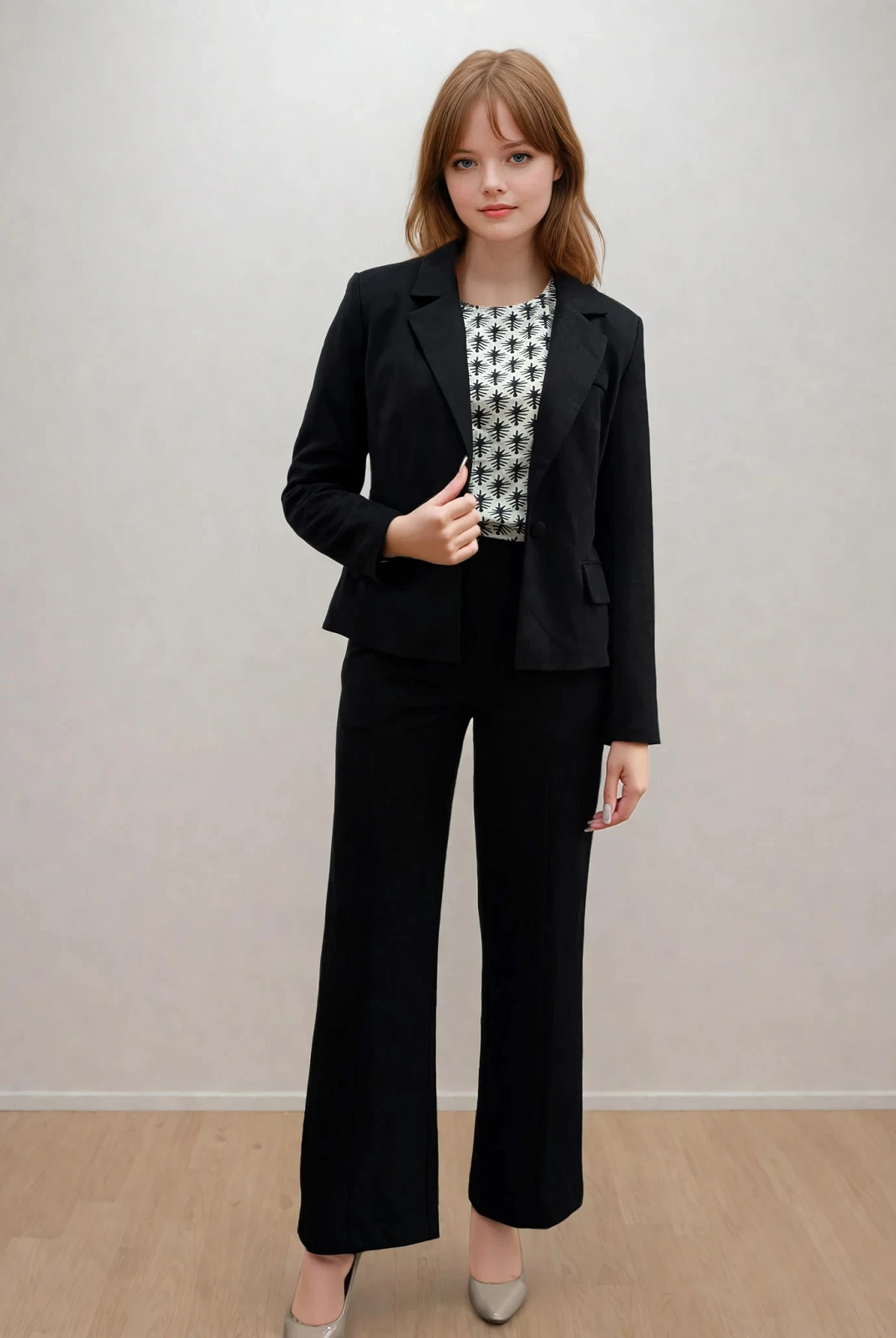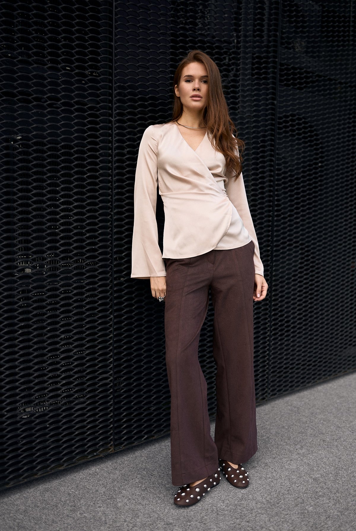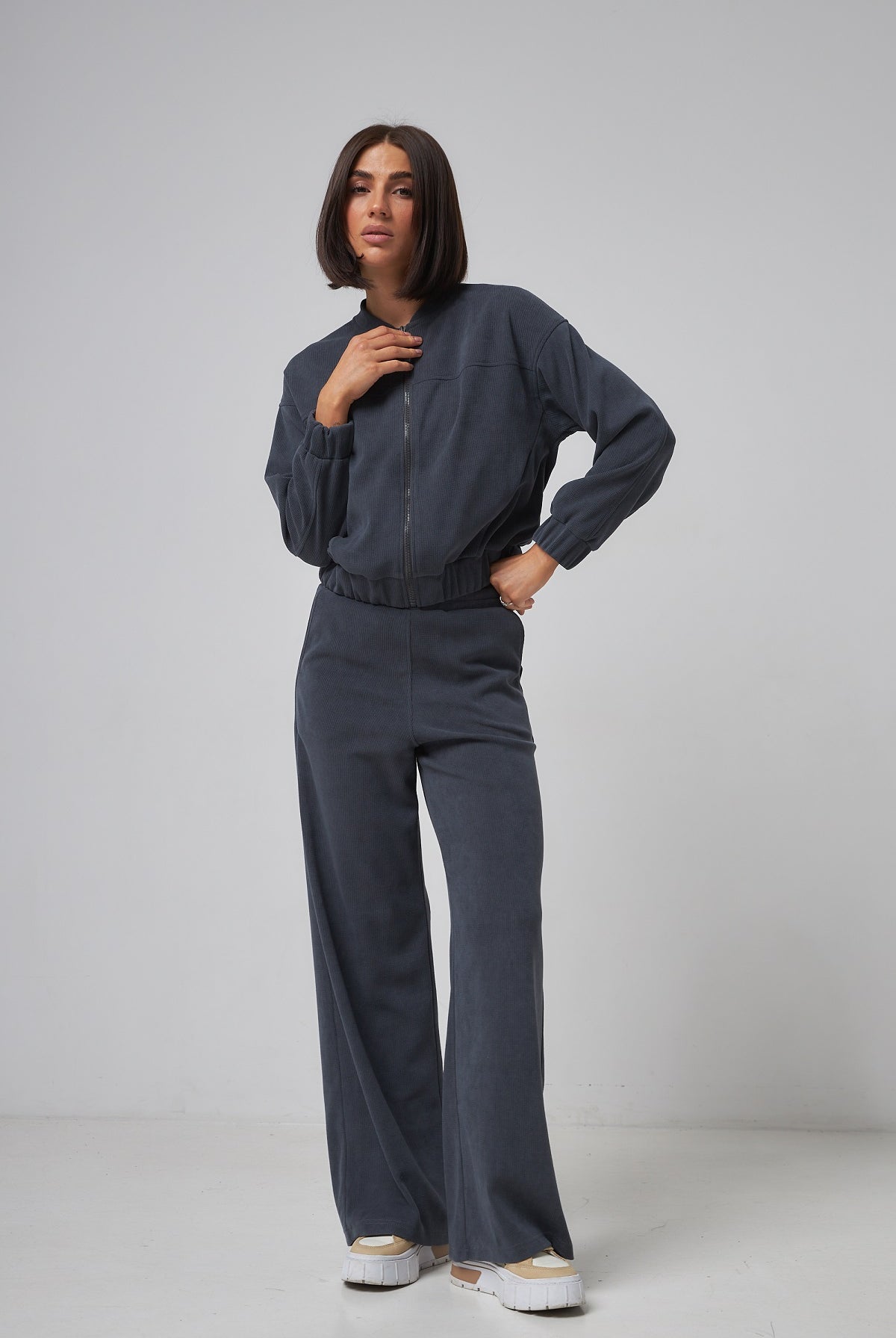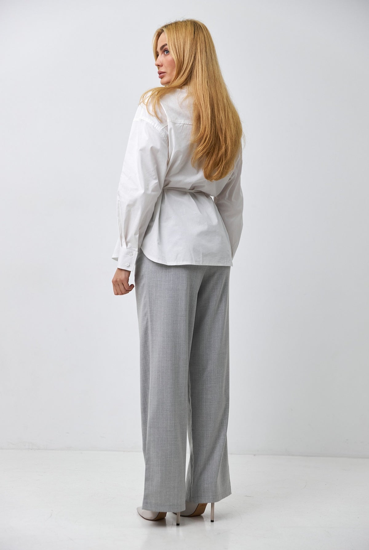 Ми повністю переосмислили форму коміра, зробивши його більш актуальним та структурним. Він тримає форму та додає образу завершеності.