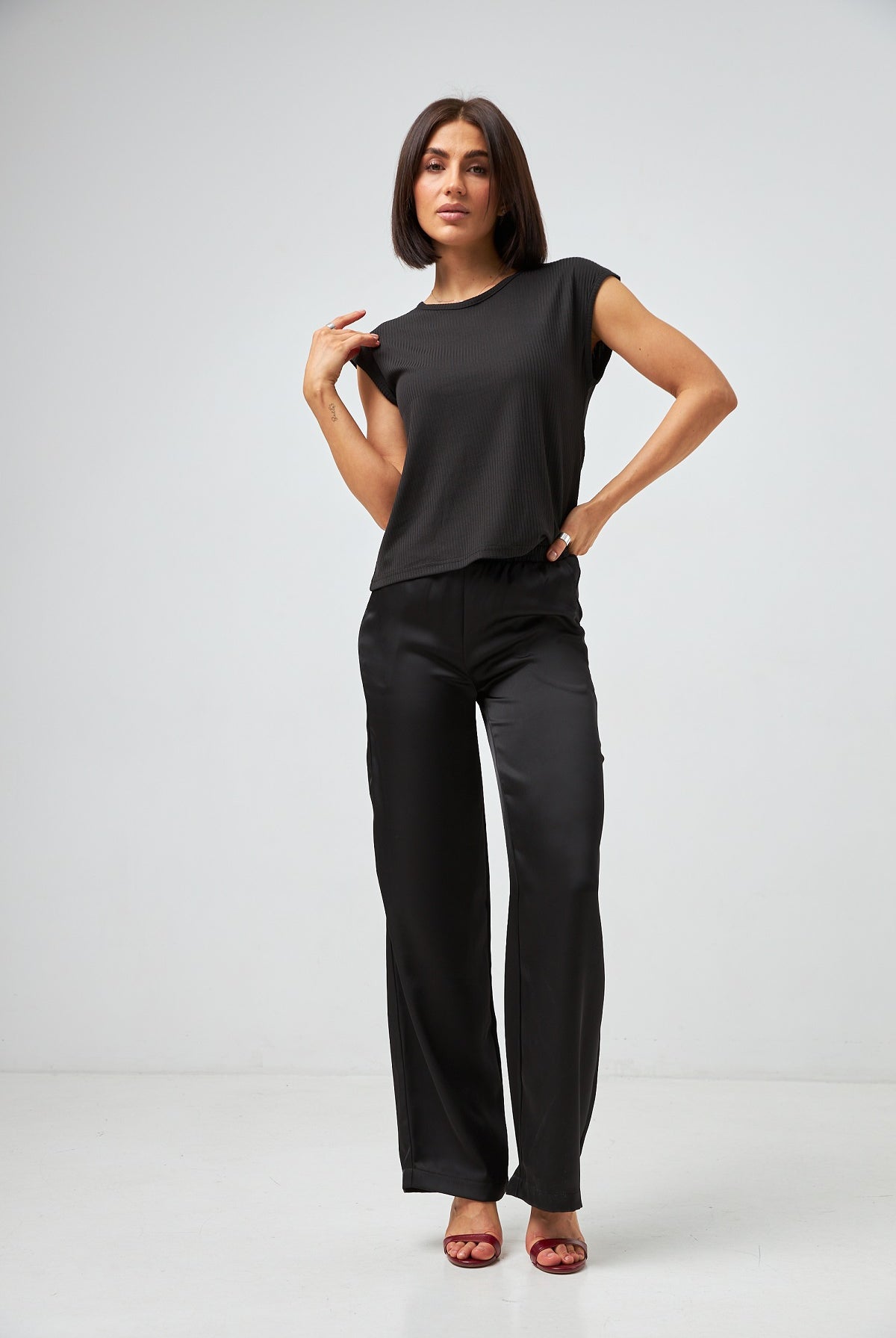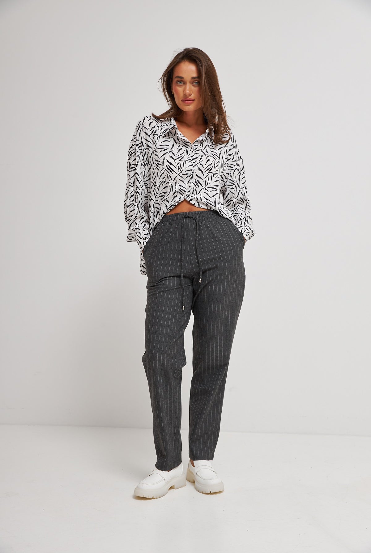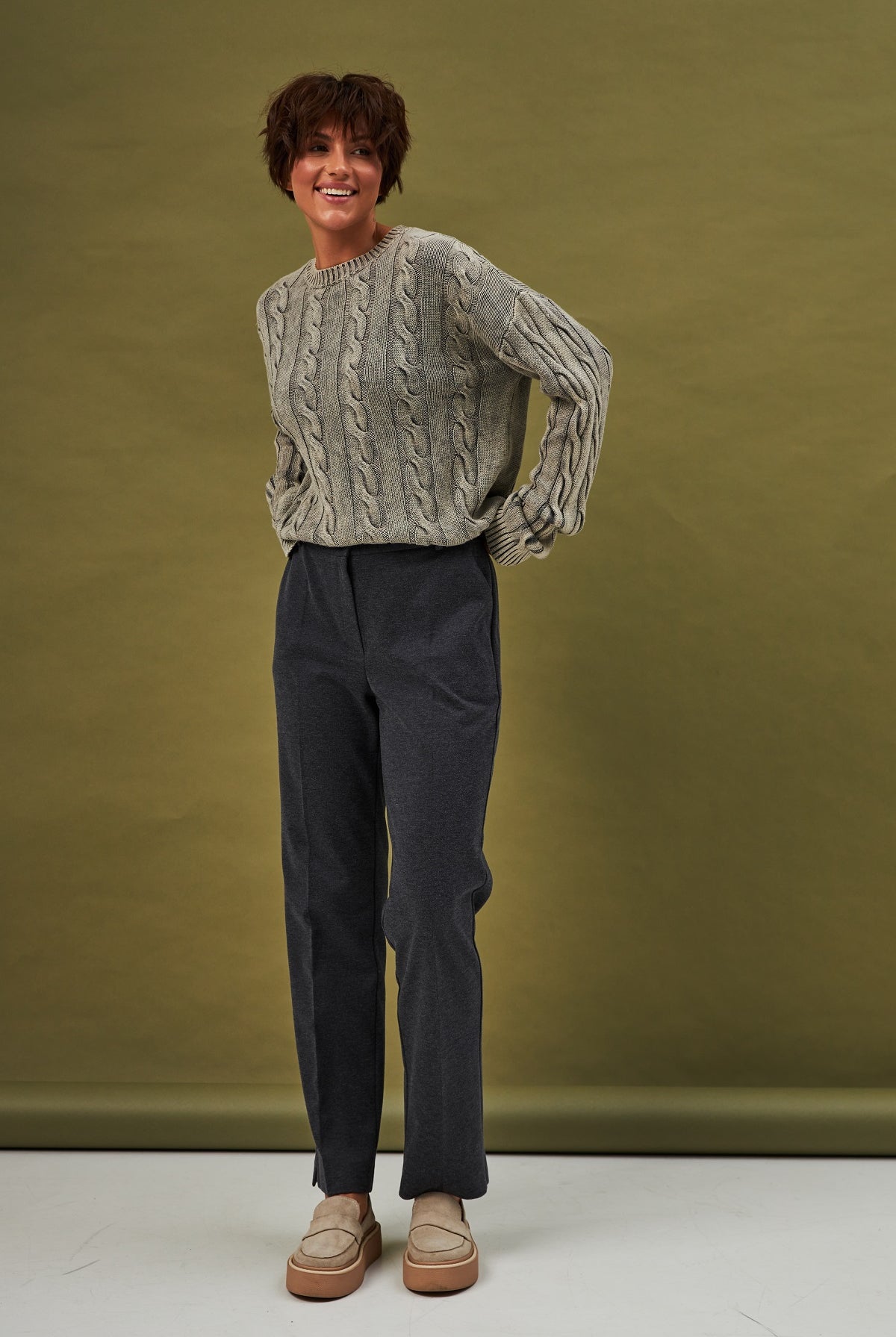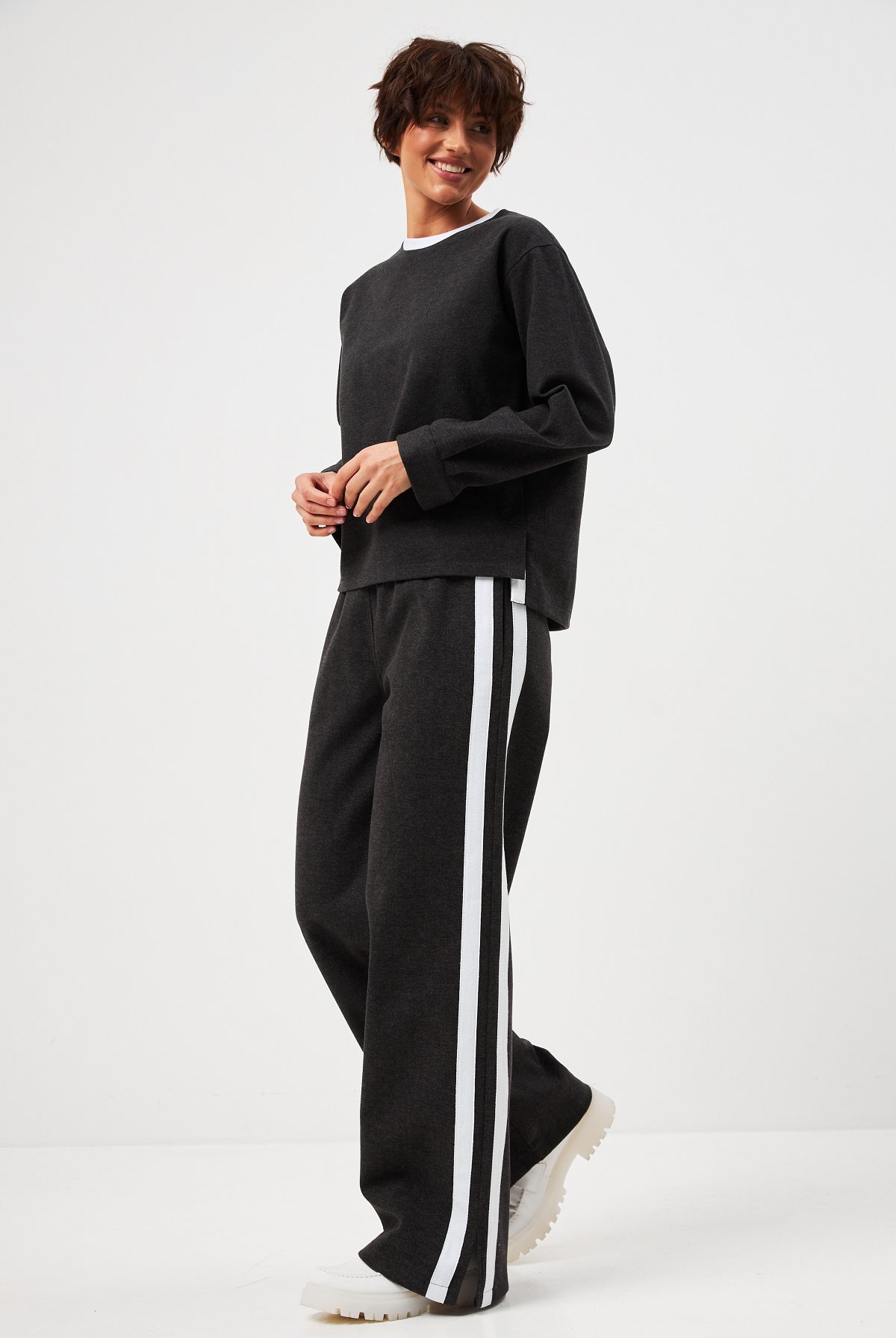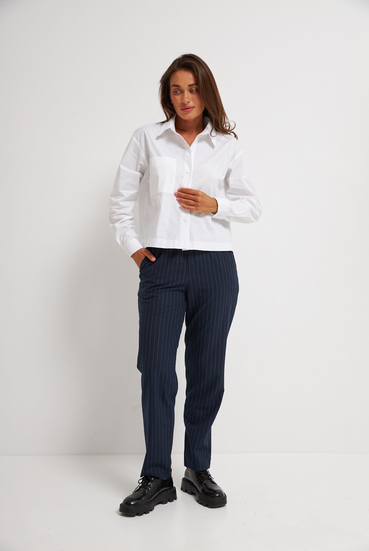 Ми повністю переосмислили форму коміра, зробивши його більш актуальним та структурним. Він тримає форму та додає образу завершеності.
